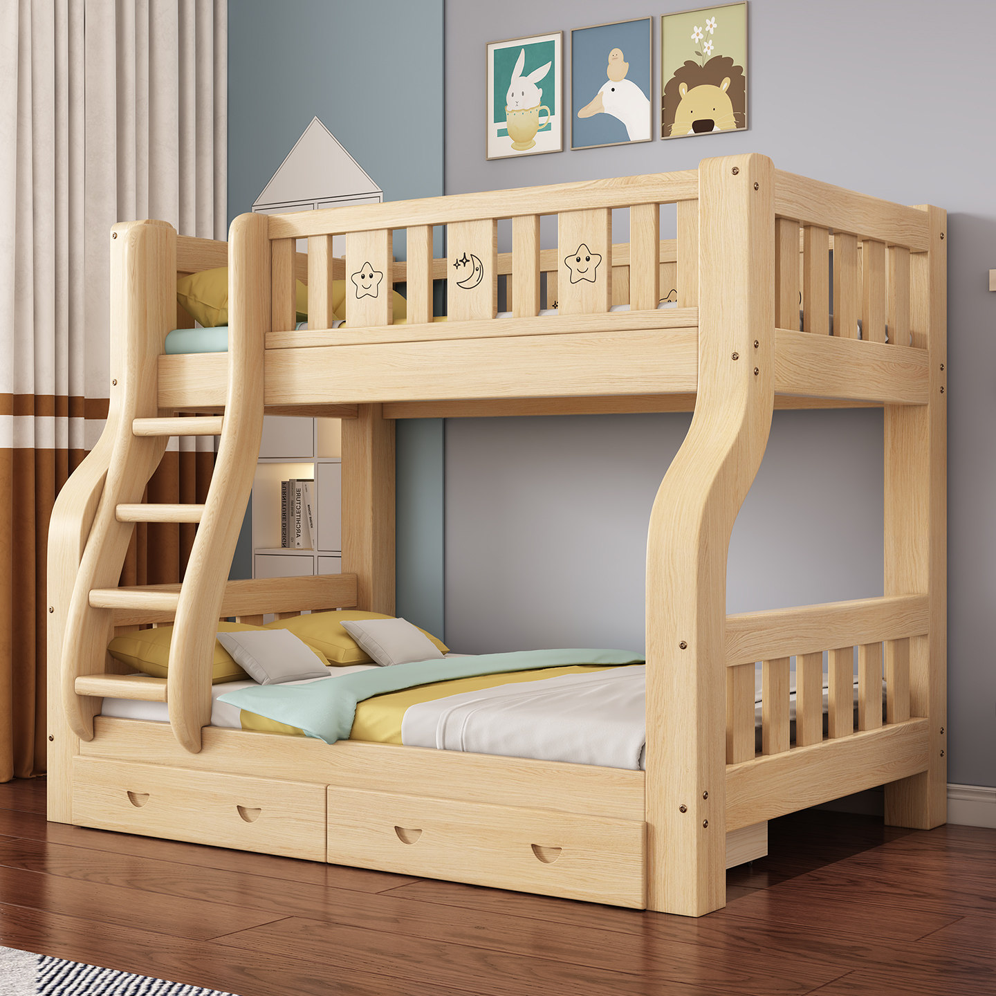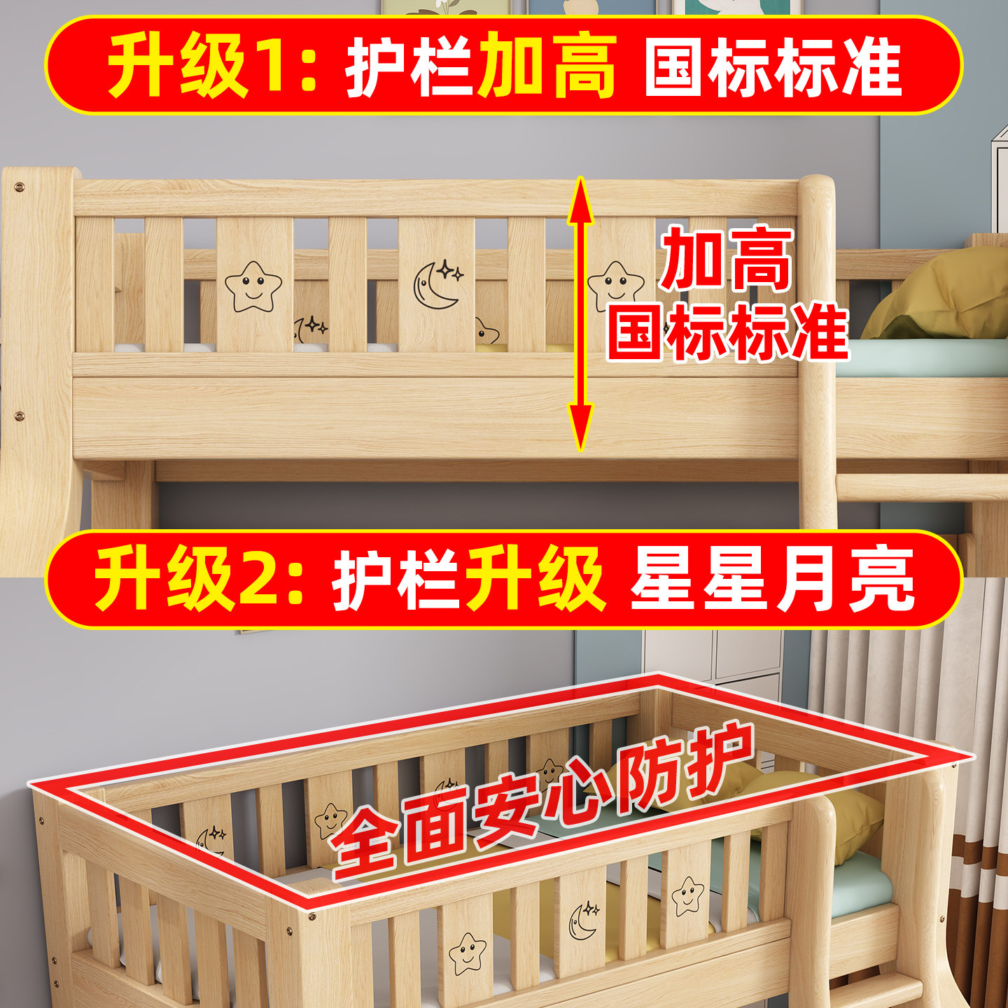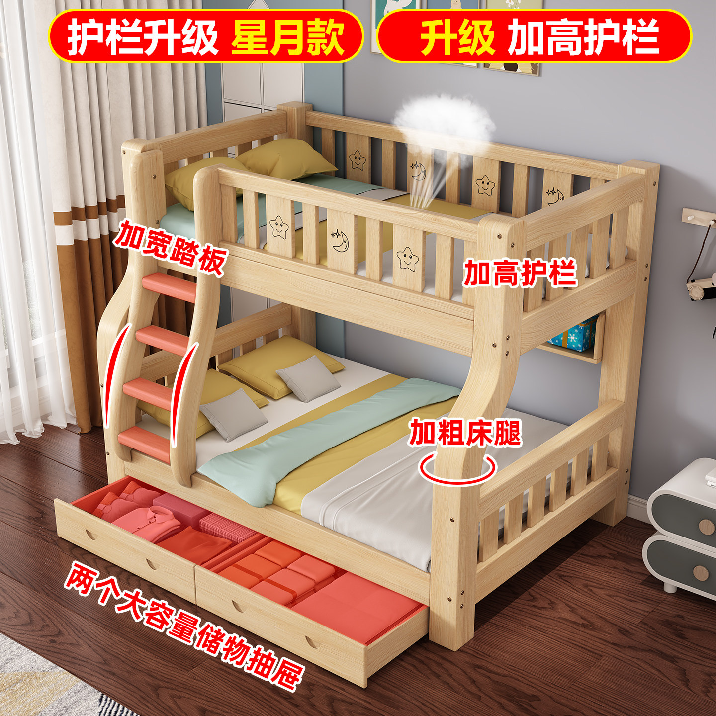 实木上下铺双层床小户型儿童高低床加粗厚成人互不干扰两层子母床