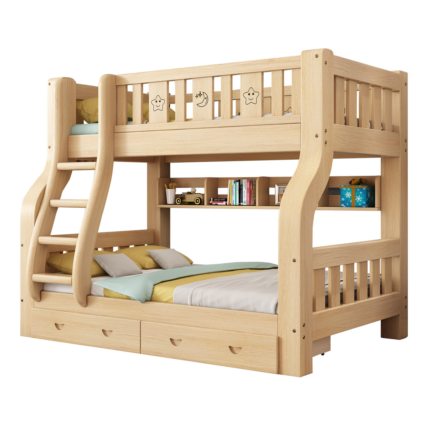 实木床橡木多功能上下床双层床儿童床子母床高低床双人床上下铺床