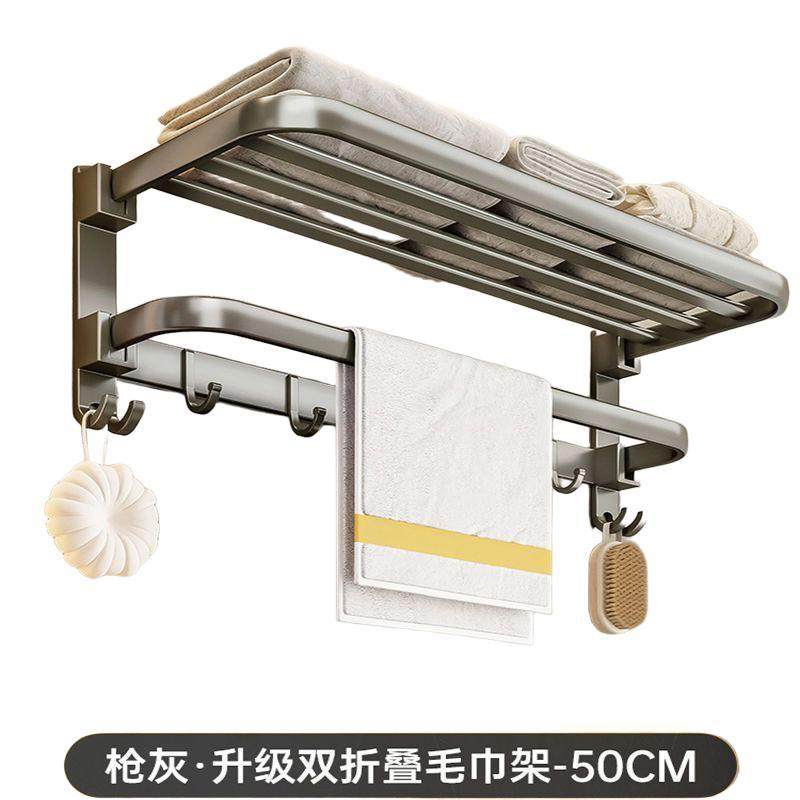 枪灰色免打孔毛巾架卫生间太空铝毛巾杆厕所置物架壁挂浴室卫浴厂