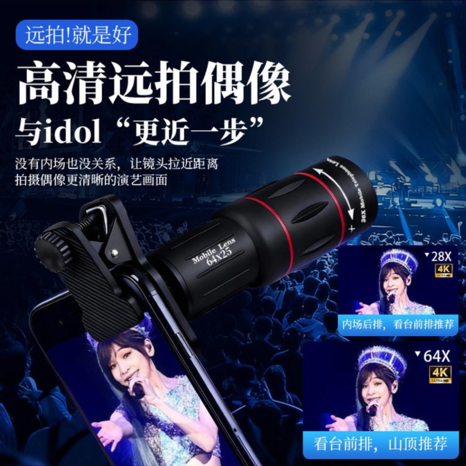 手机望远镜演唱会必备辅助拍摄神器 长焦外置镜头看台追星音乐节专用便携拍照高清防抖钓鱼直播2026新款