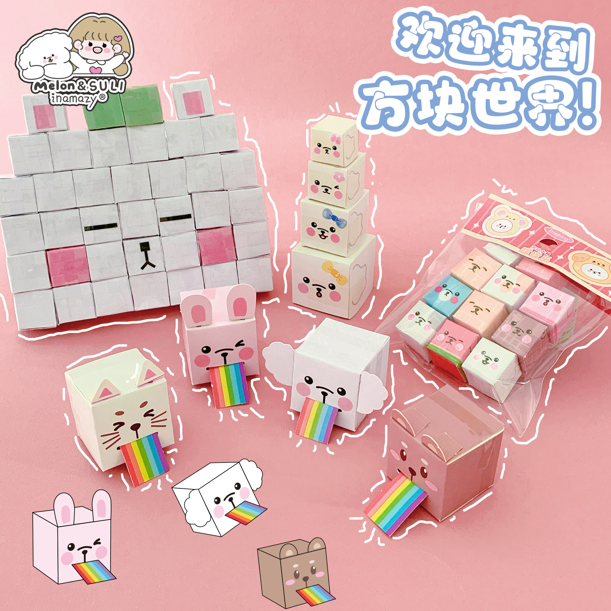 inamazy方块捏捏手工diy材料包儿童益智玩具拼装立体方块积木