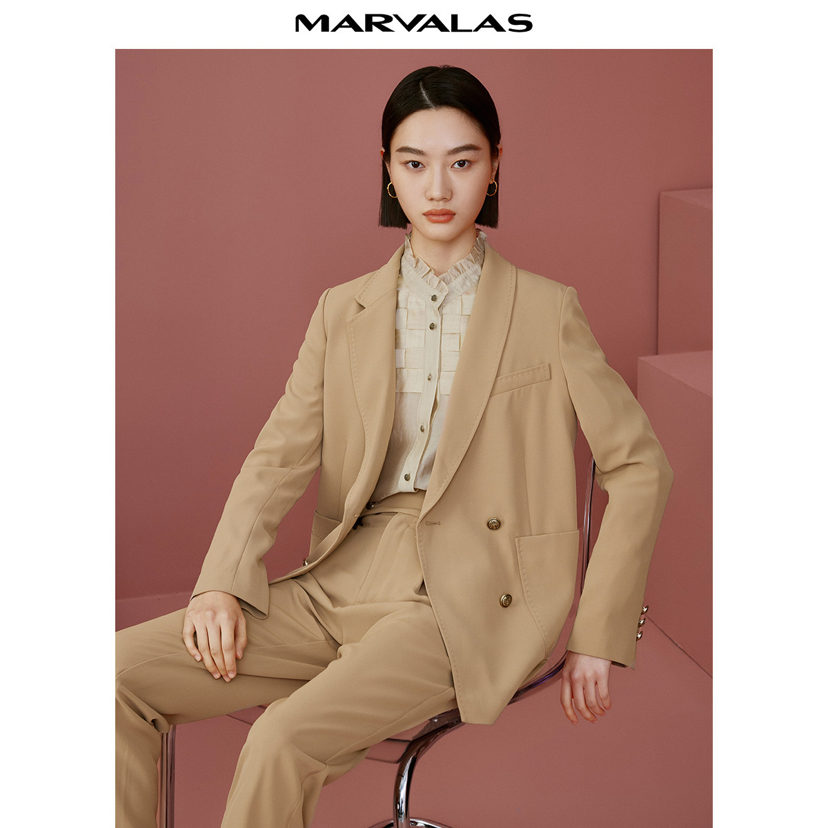 COCOBELLA老钱风精纺花纱羊毛正肩西装女秋气质休闲外套SI7029
