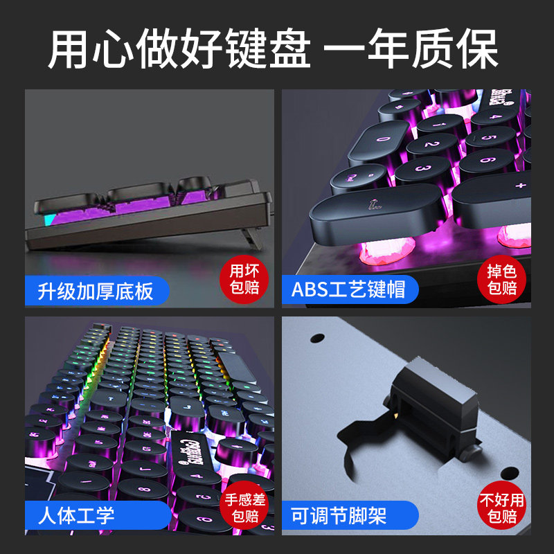 机械手感朋克键盘鼠标套装静音有线电脑电竞游戏办公键鼠三件套