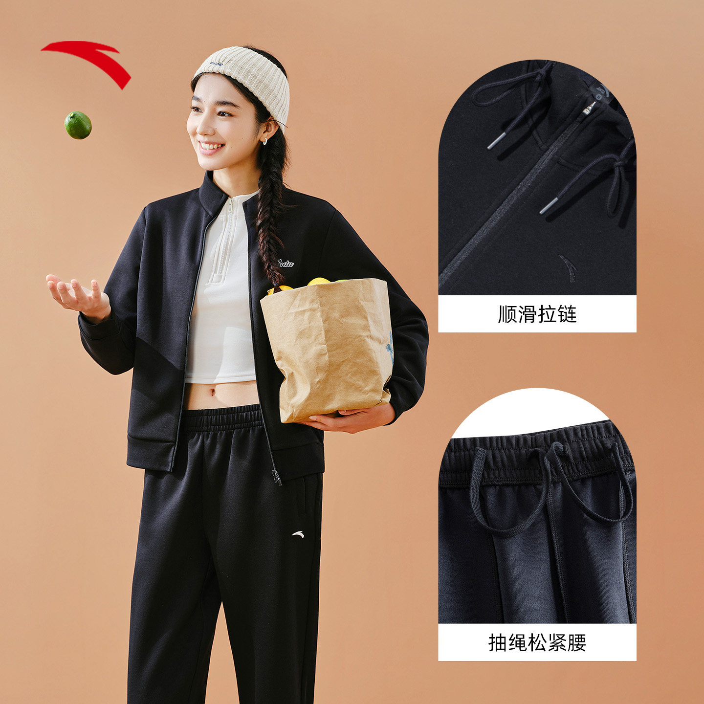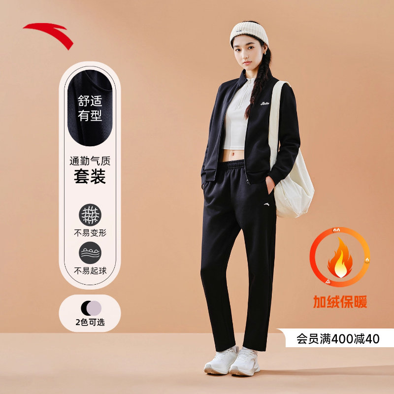 安踏易打理套装立领卫衣外套运动长裤加绒两件套女装针织运动套