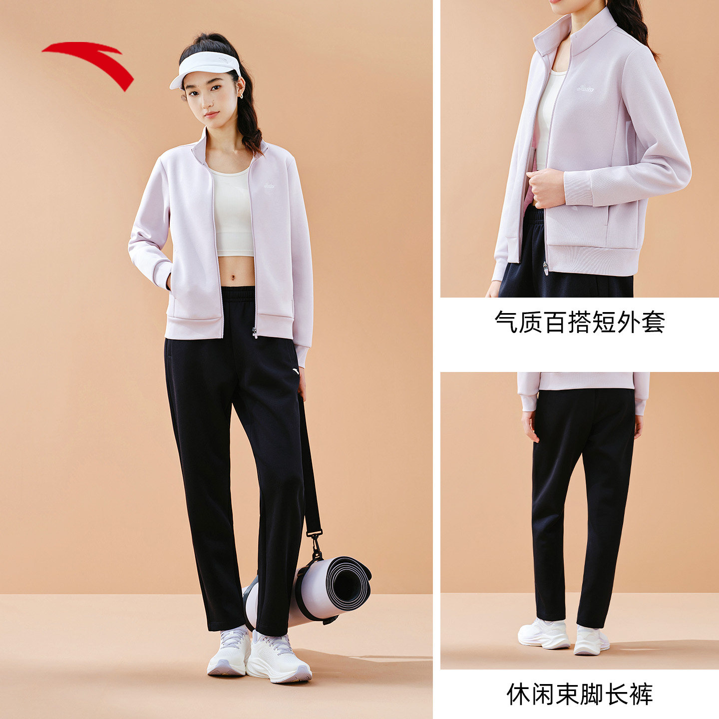 安踏运动套装女2025新款冬季休闲立领长袖外套长裤加绒保暖两件套
