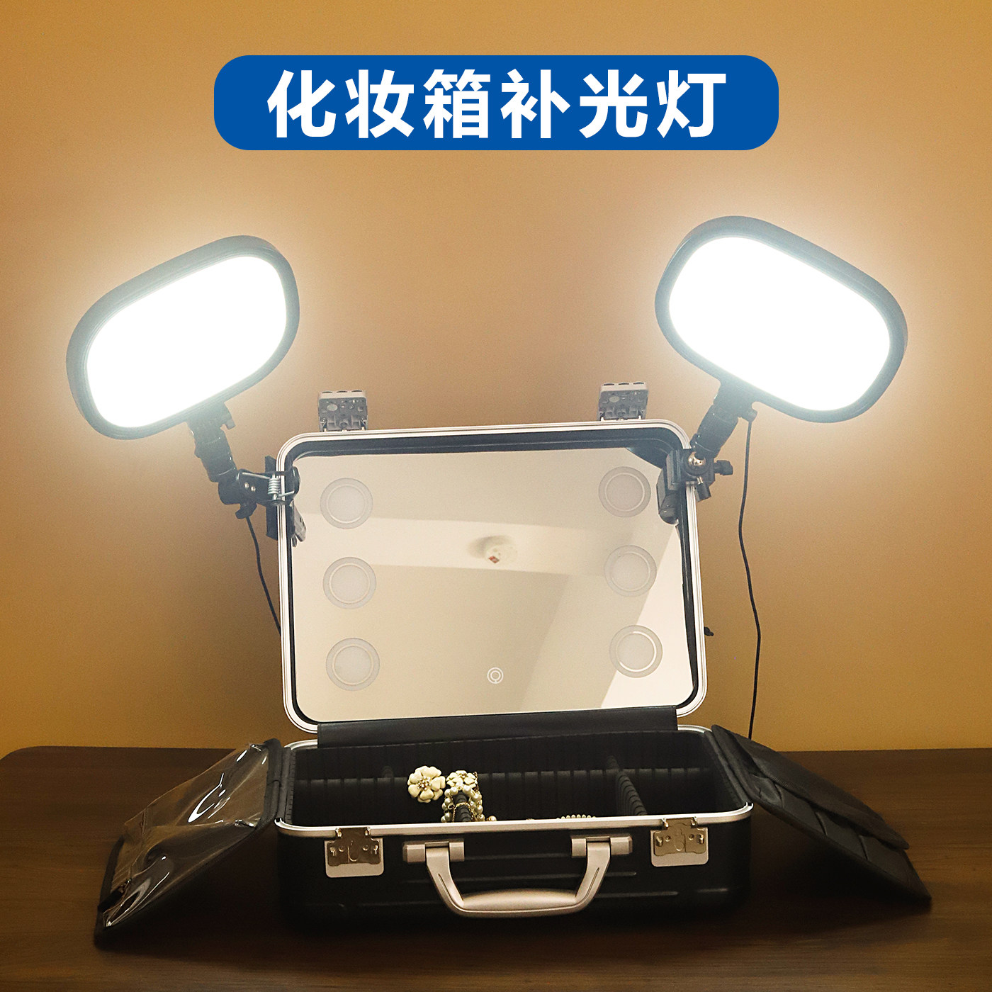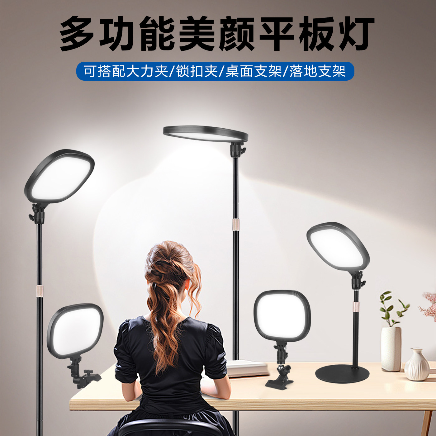 化妆师专用补光灯便携跟妆师化妆箱夹式镜前led全屏平板灯梳妆台面部下巴护眼美颜灯夹子款直播拍摄固定支架
