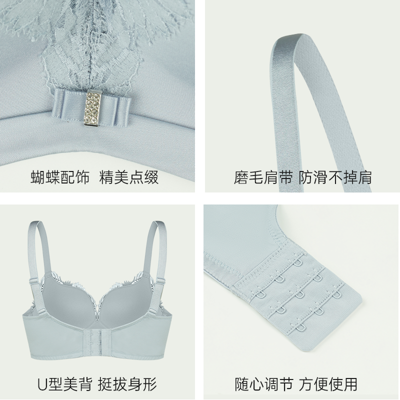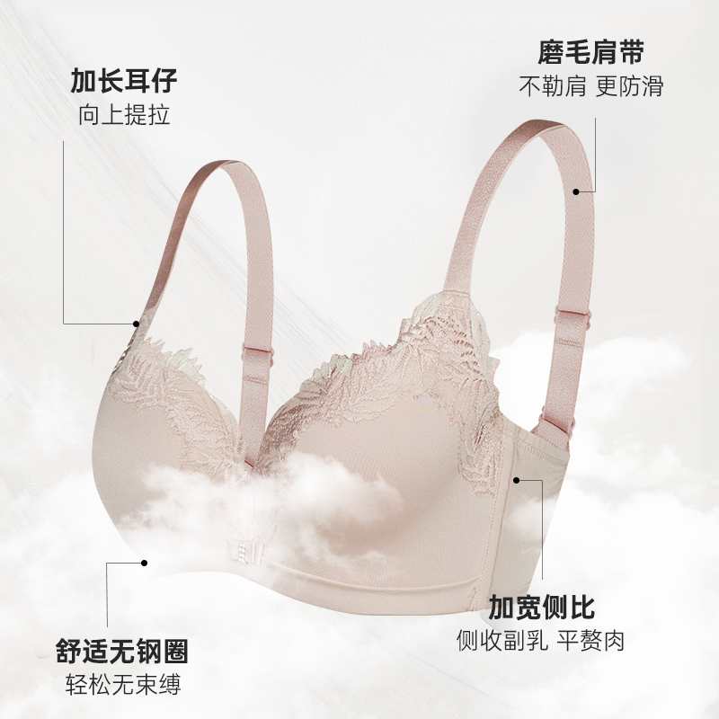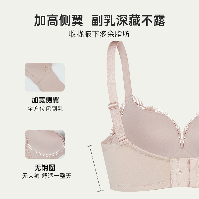 润微提拉女王内衣女大胸显小无痕大码调整防下垂收副乳粉底液文胸