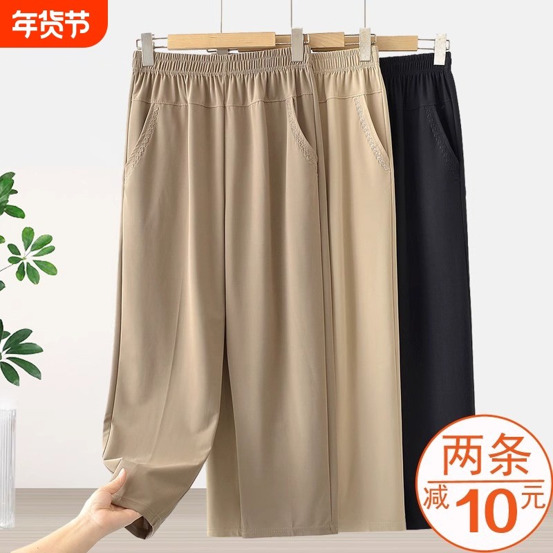 妈妈宽松裤子夏季中老年人九分裤薄款大码七分裤女冰丝直筒奶奶裤