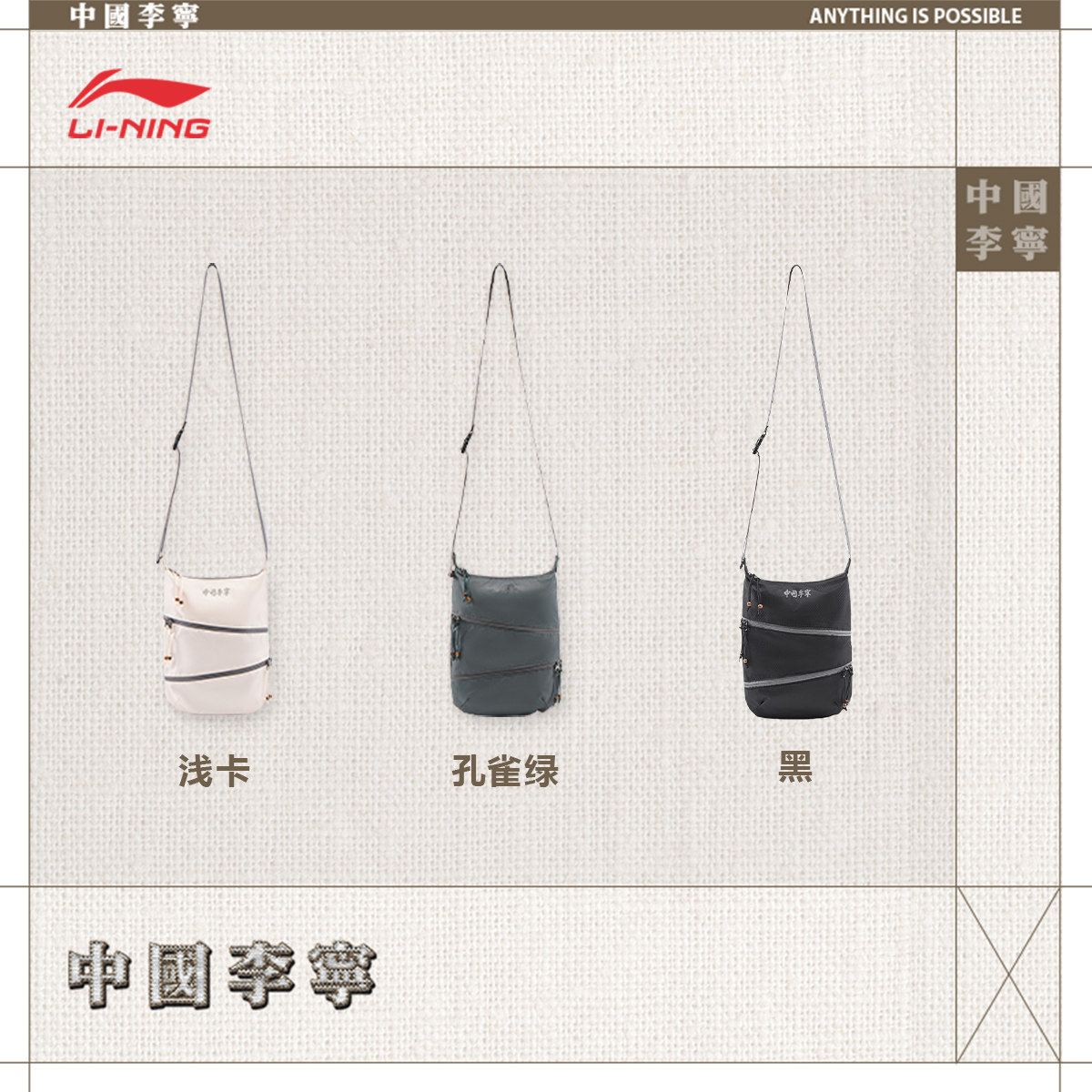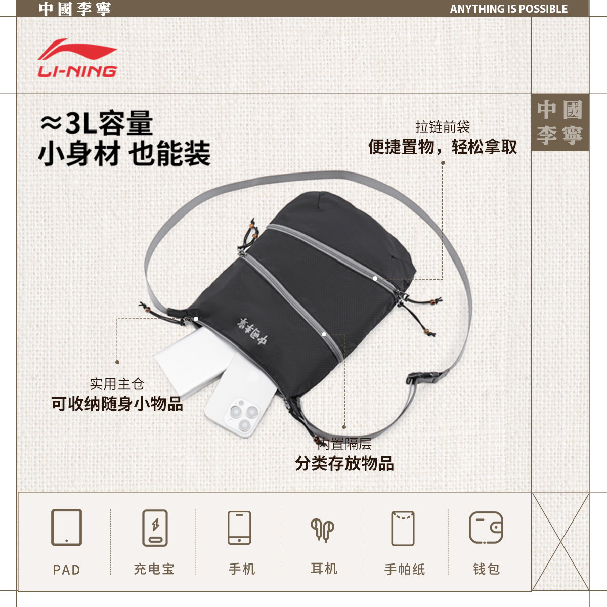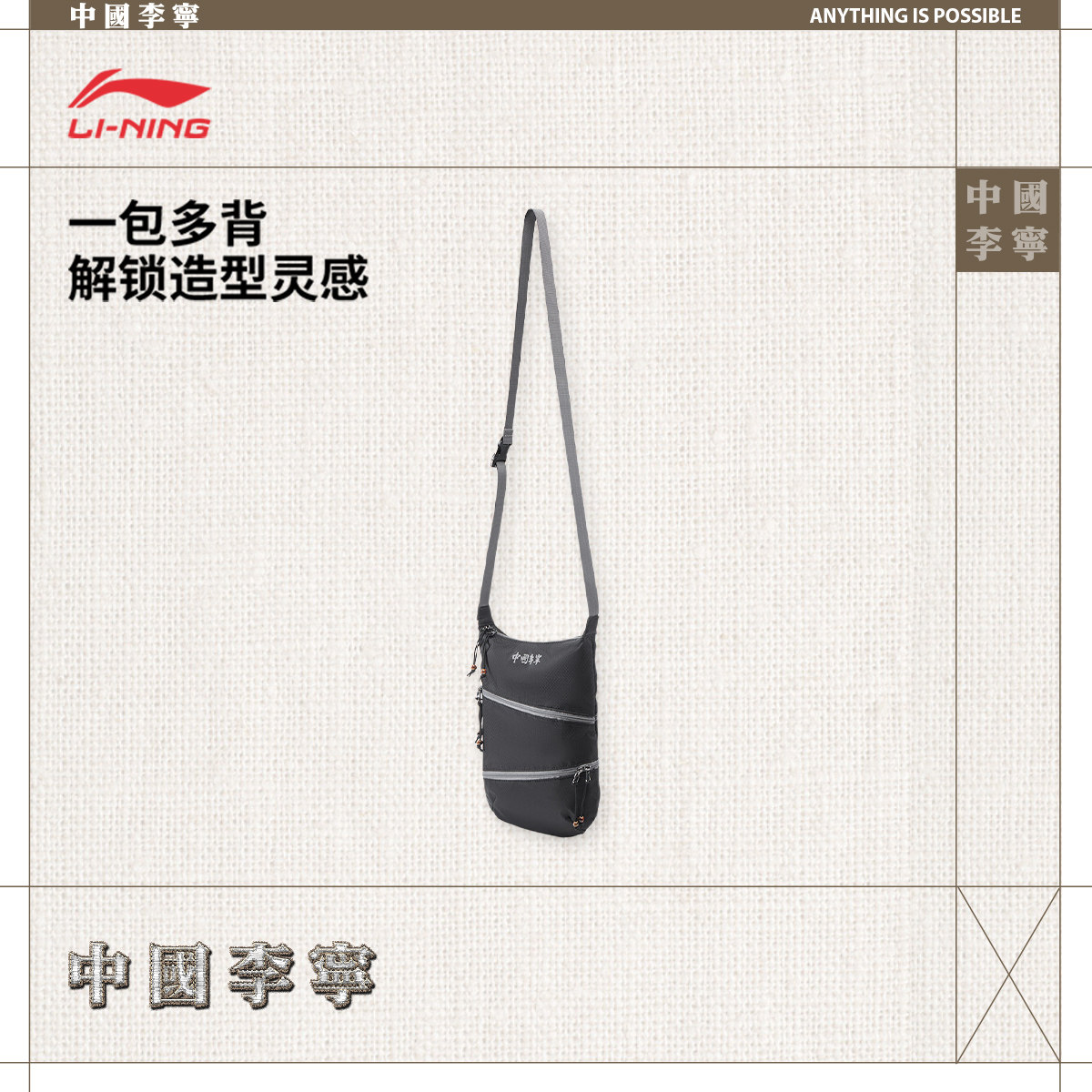 中国李宁斜挎包男子2026新款官方正品健身出行轻便小巧运动挎包