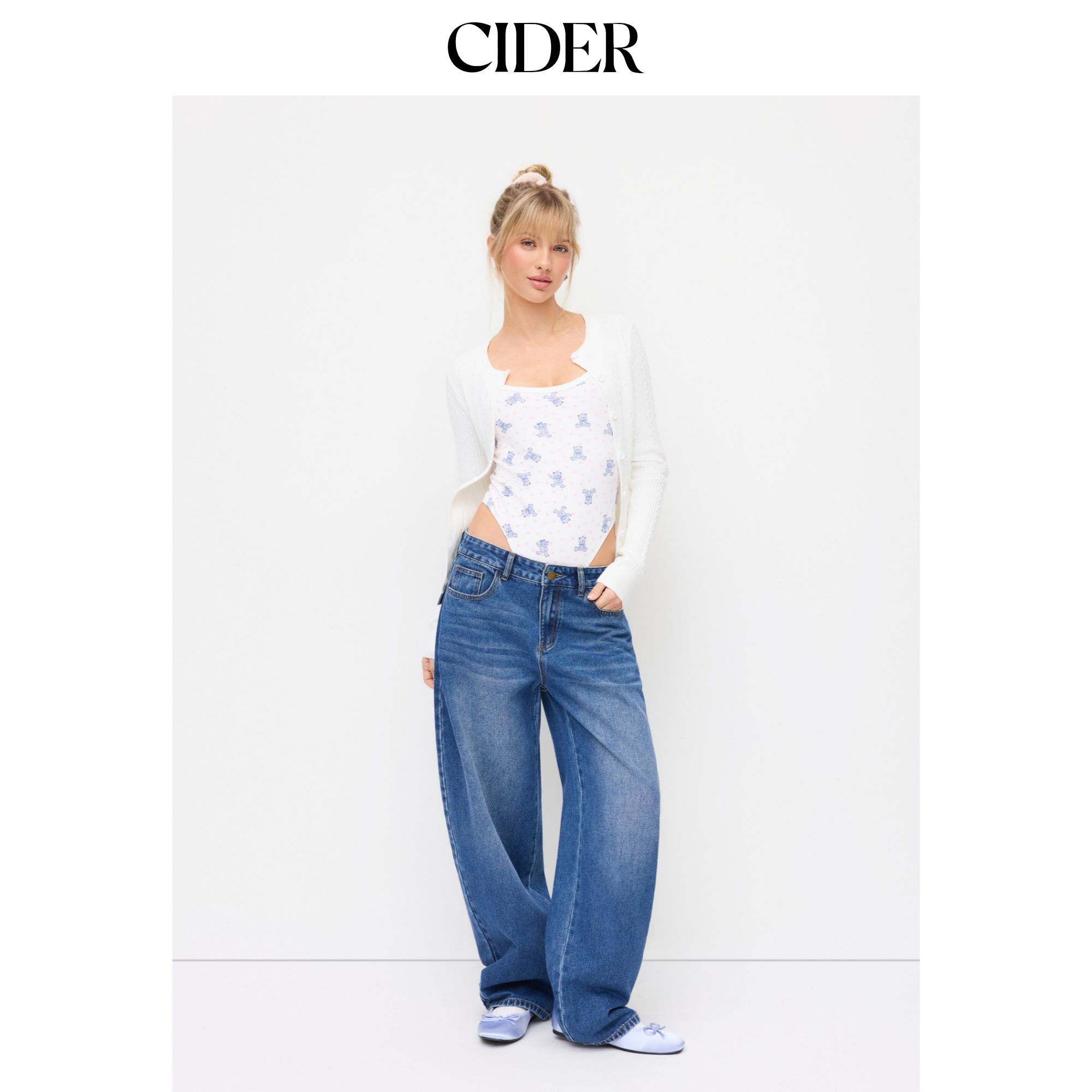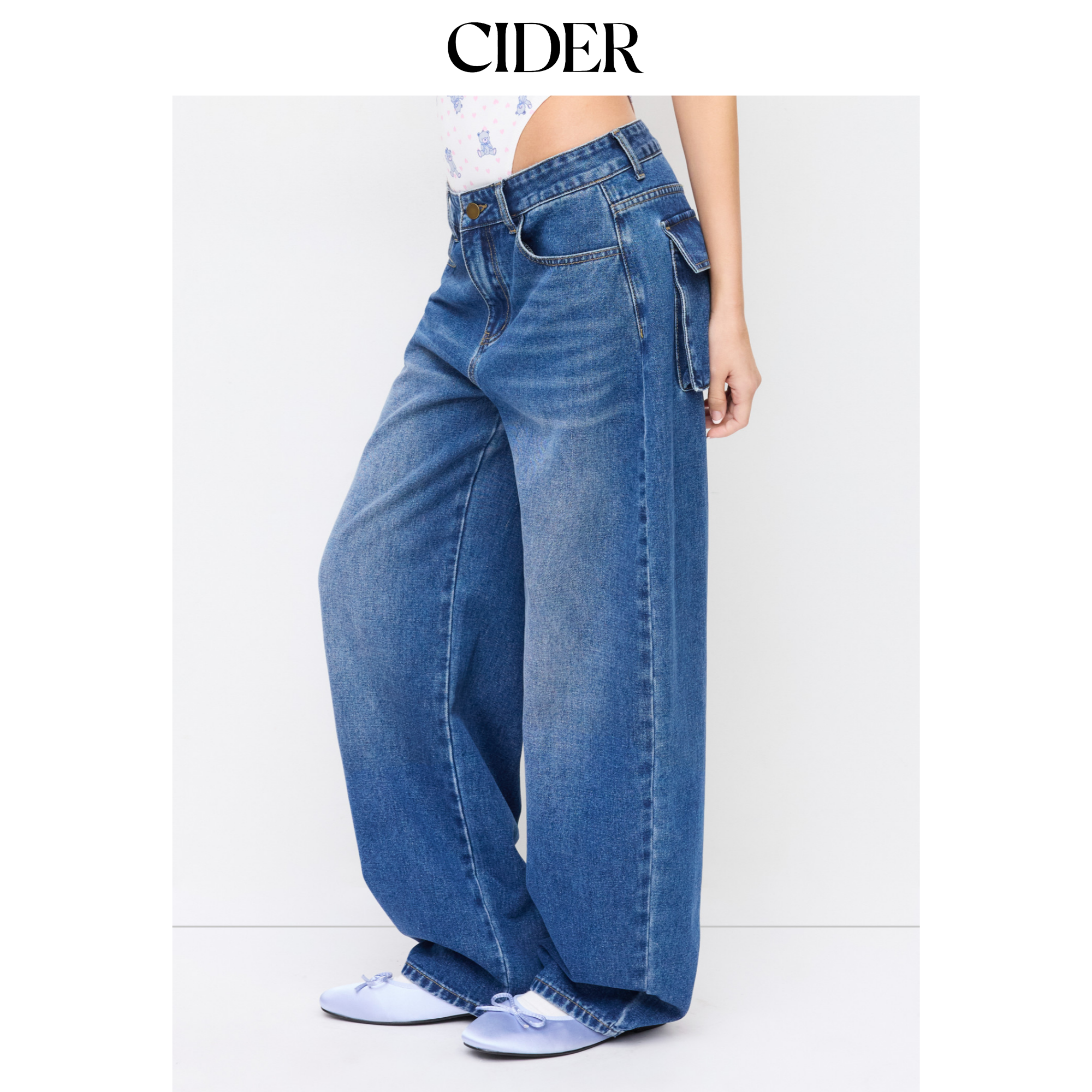 CIDER水洗牛仔低腰锥形牛仔裤115104051
