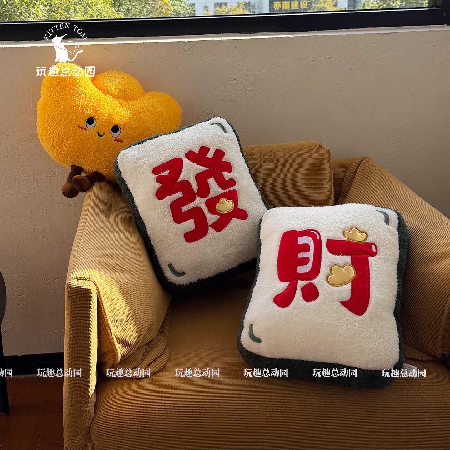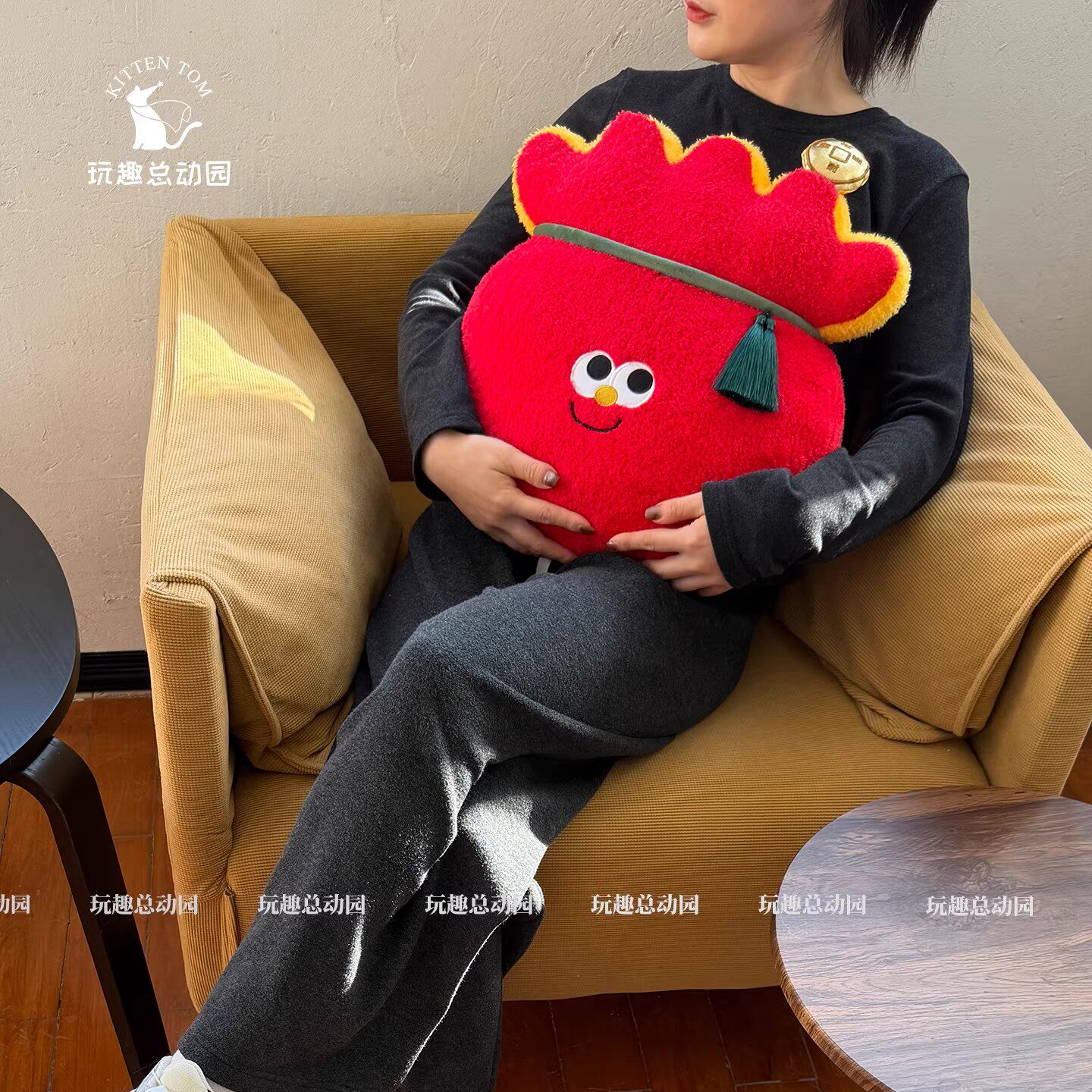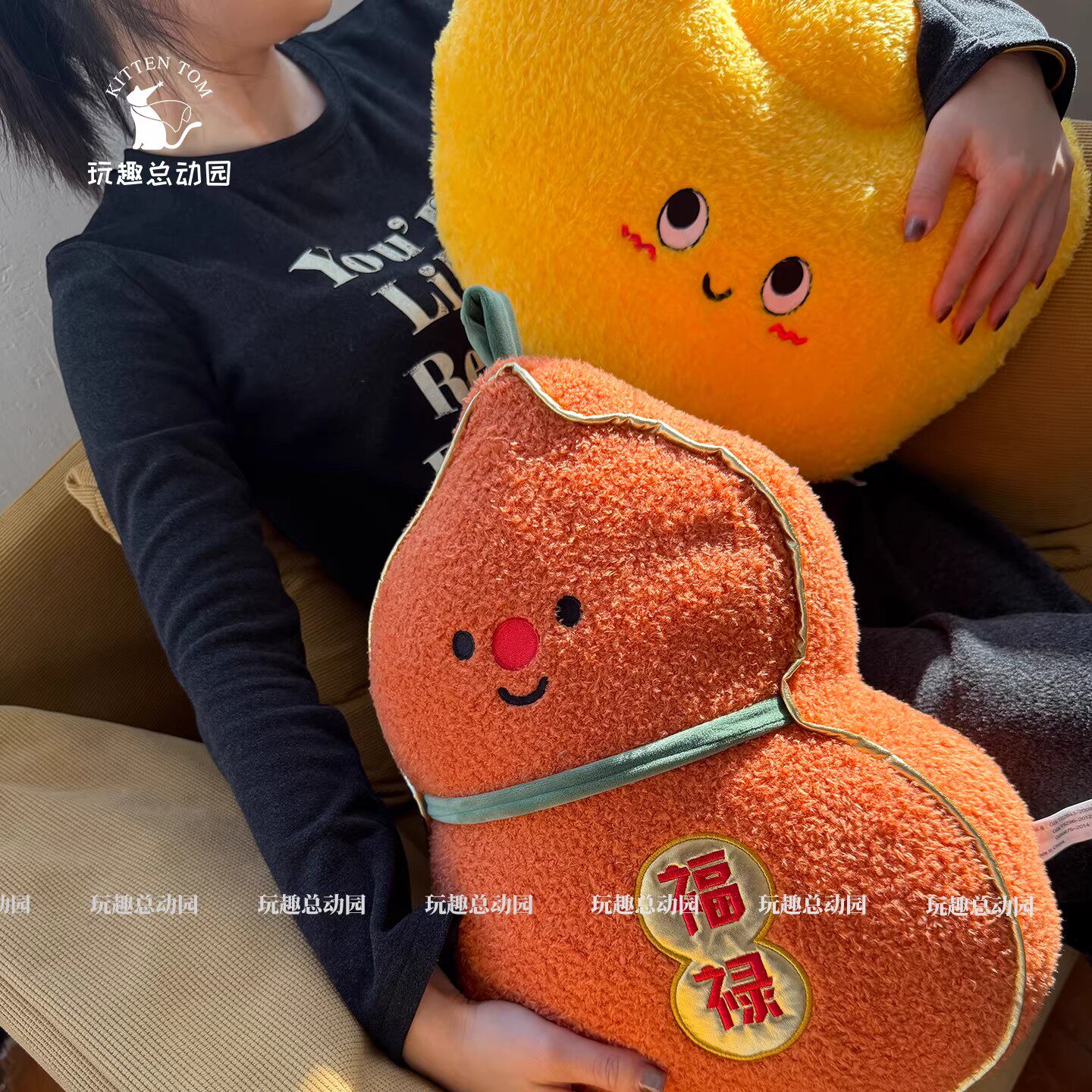 新年欢乐抱枕毛绒玩具卡通玩偶沙发靠枕午睡靠垫客厅节日装饰礼物