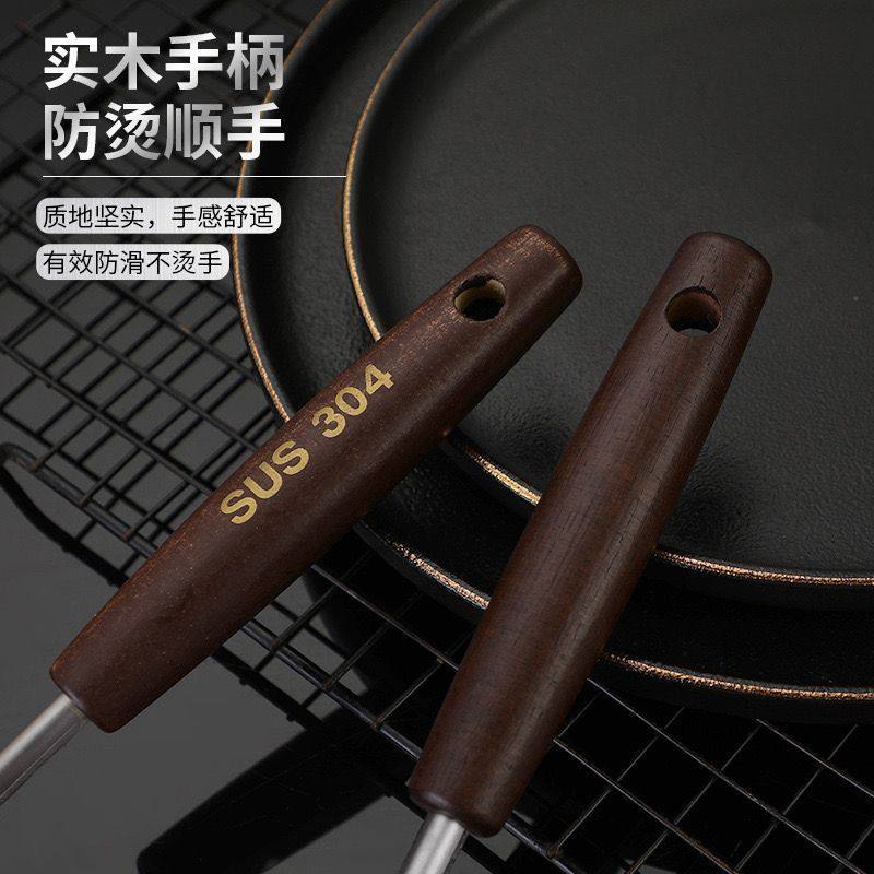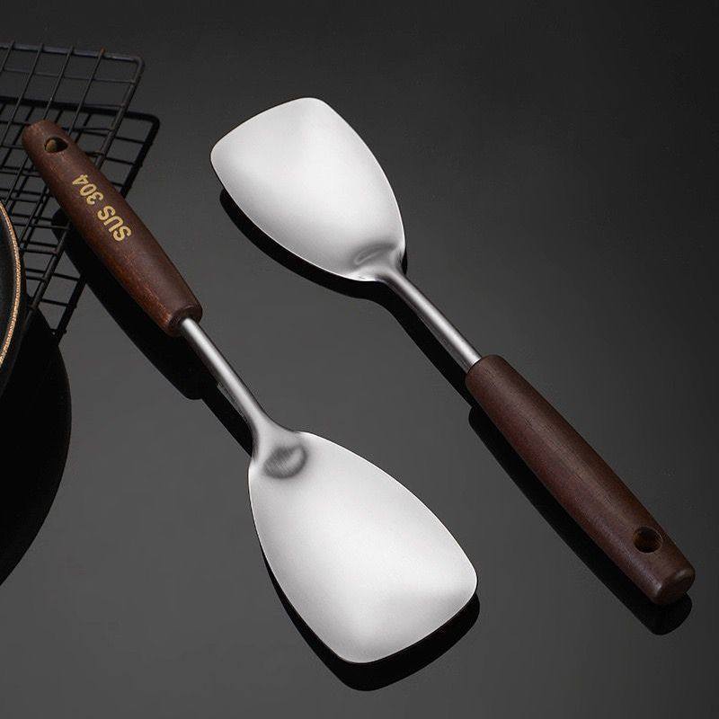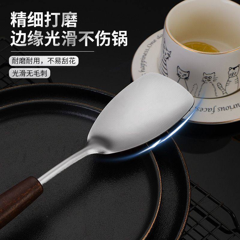 胡桃木小锅铲炒菜家用不锈钢食品级勺子厨房用木柄升级款加厚