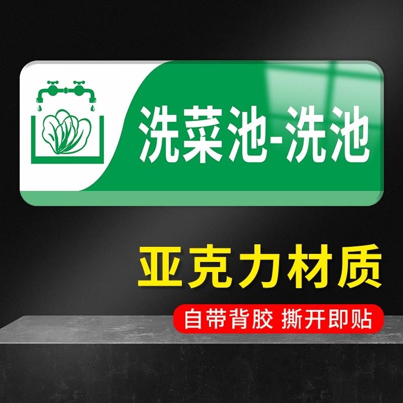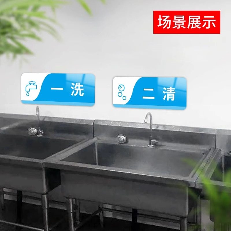 亚克力厨房分类标识牌一清二洗三消毒餐饮标识牌蔬菜肉类餐具清洗池消毒池分类提示牌学校食堂4D管理标签贴