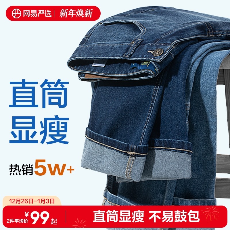 【百搭王】网易严选百搭牛仔裤男款弹力直筒休闲长裤高端黑色裤子