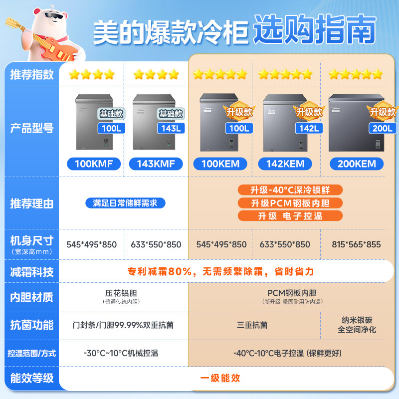 美的100升小冰柜家用小型迷你冷柜冷冻冷藏一级减霜母乳官方冰箱