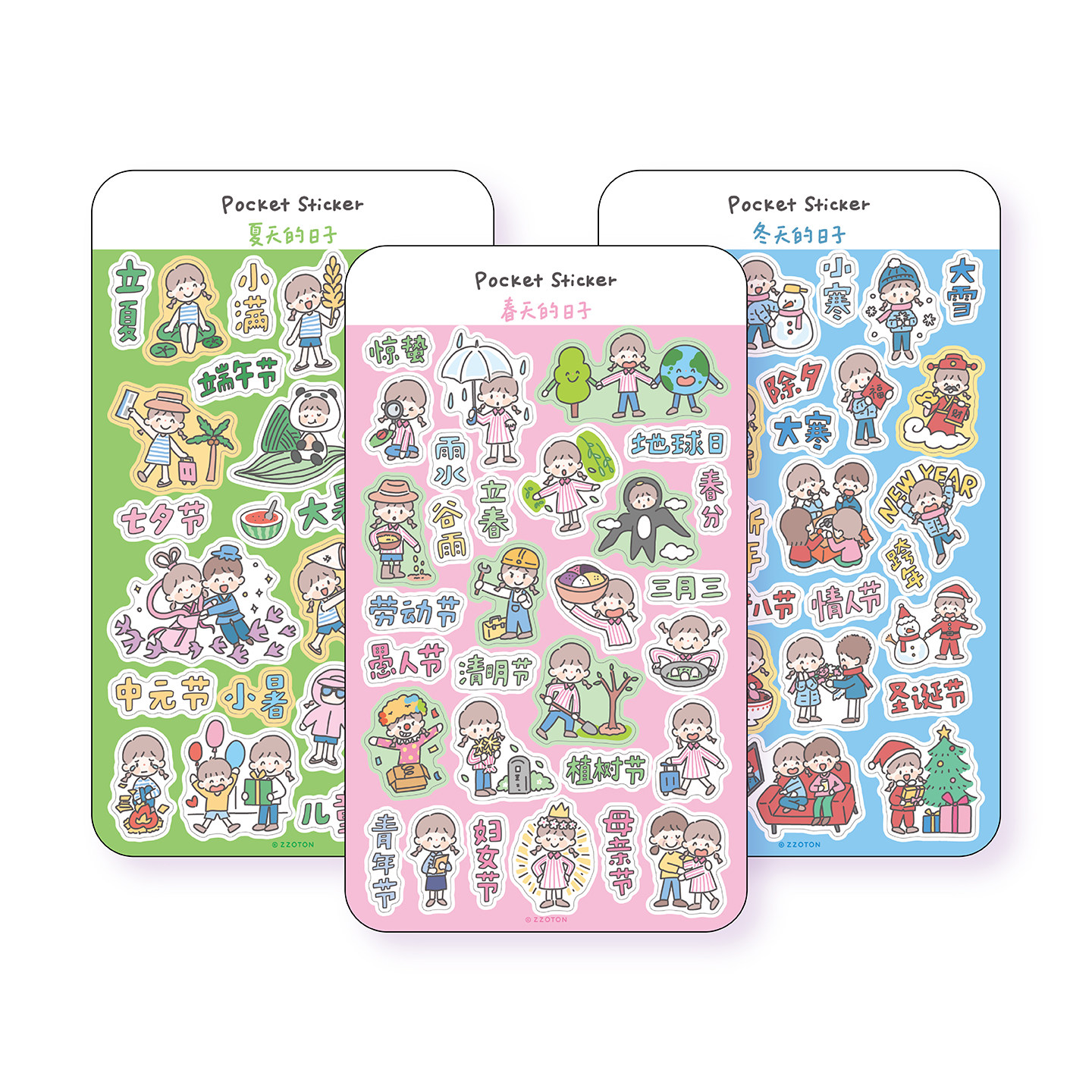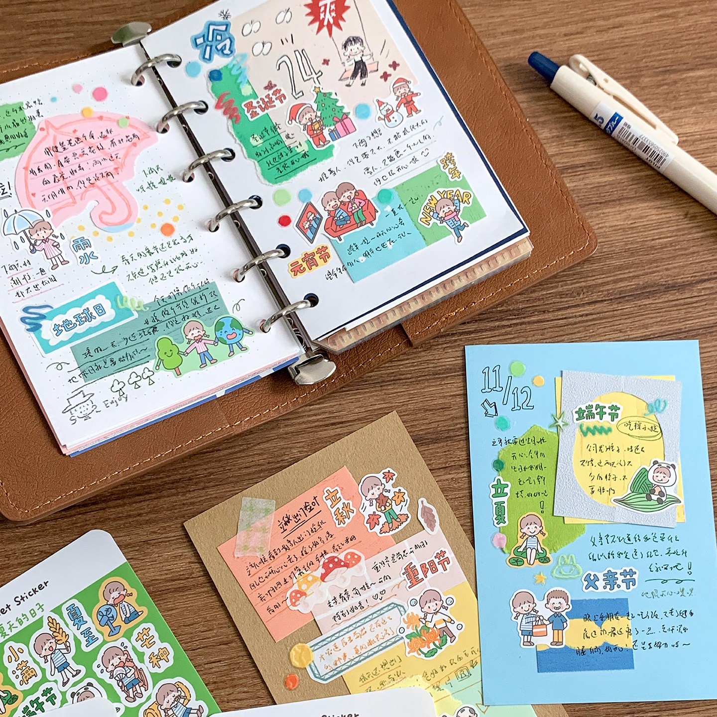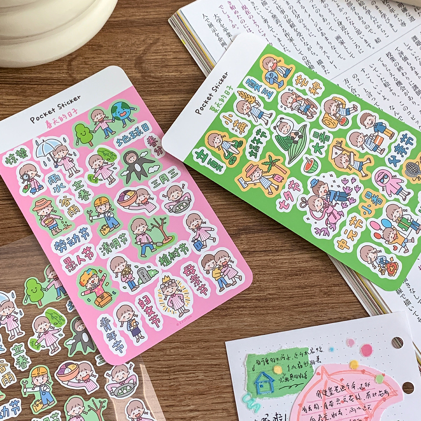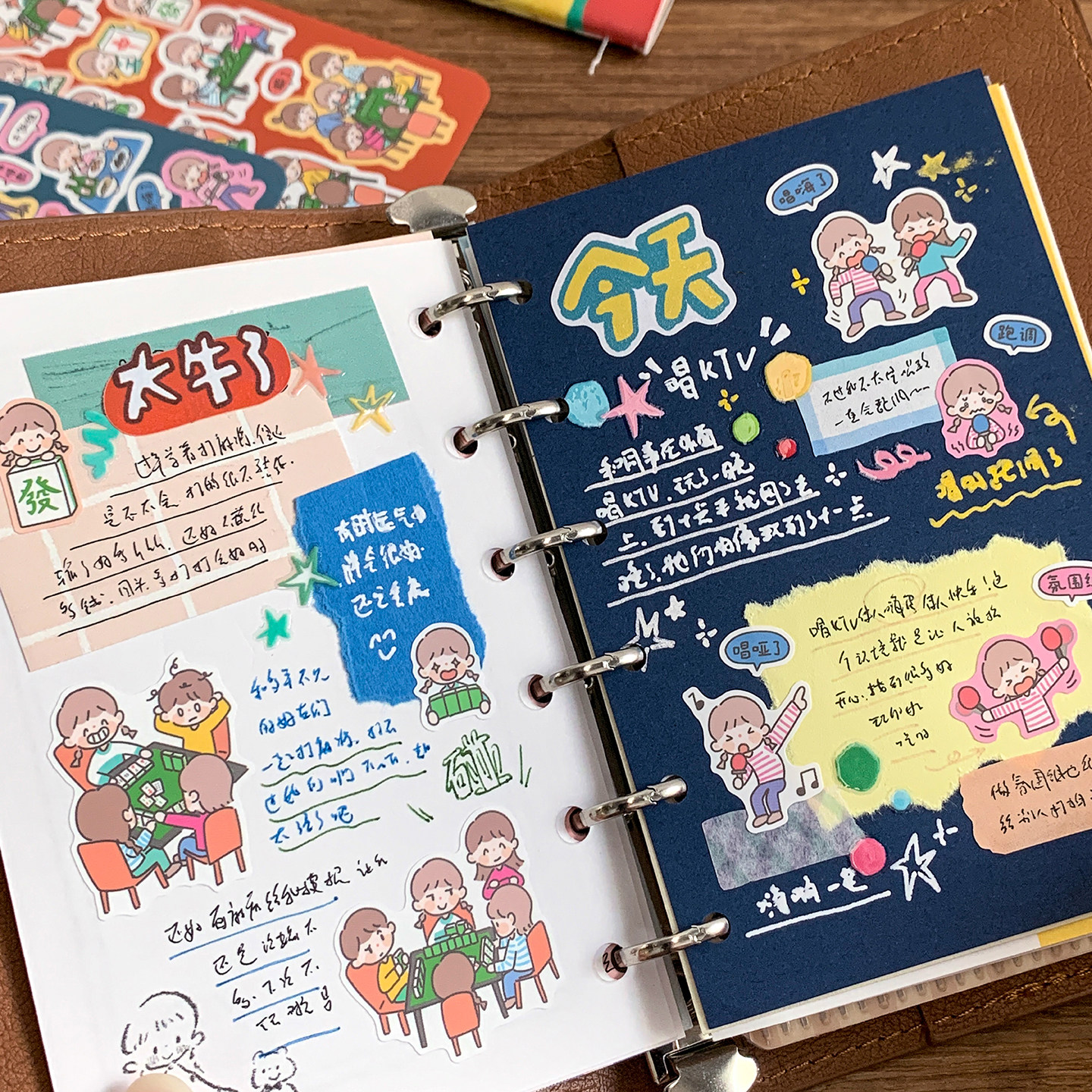 卓大王【阿卓口袋贴纸】麻将卡拉OK节日节气手帐春夏秋冬季节贴画