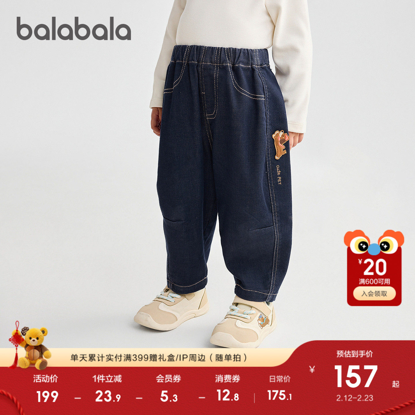 【商场同款】巴拉巴拉儿童牛仔裤男女宝宝长裤子宽松2025冬季新款
