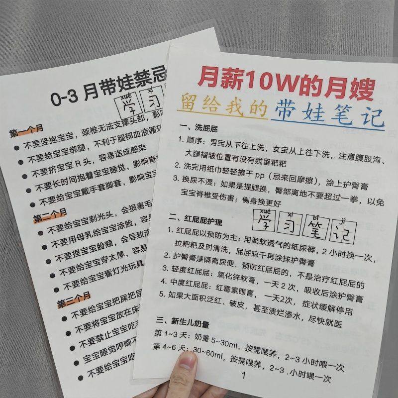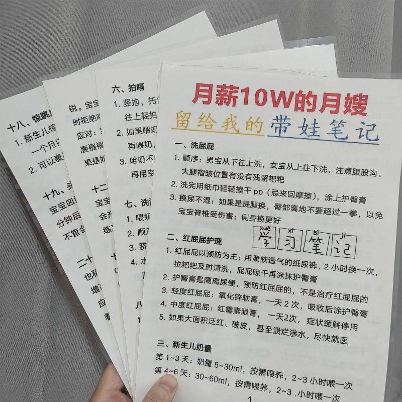 新款金牌月嫂带娃经验学习笔记新生儿宝妈月子带娃必学知识禁忌塑