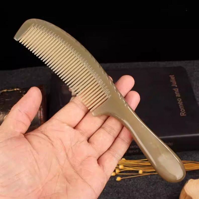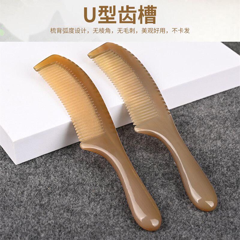 天然牛角加厚长梳子男士纯牦牛角密齿梳子便携男女士经络按摩家用