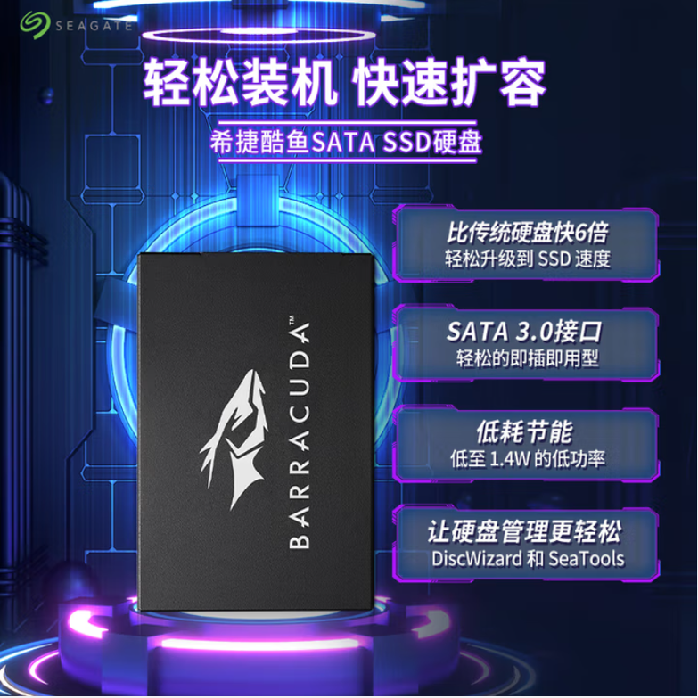 希捷固态硬盘酷鱼系列256G 512G 1T 2T SATA台式机笔记本电脑酷鱼