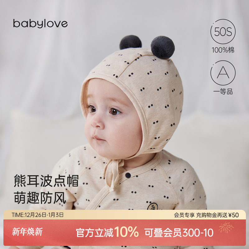 babylove婴儿帽子初生宝宝胎帽护囟门帽可爱春秋季纯棉外出防风帽