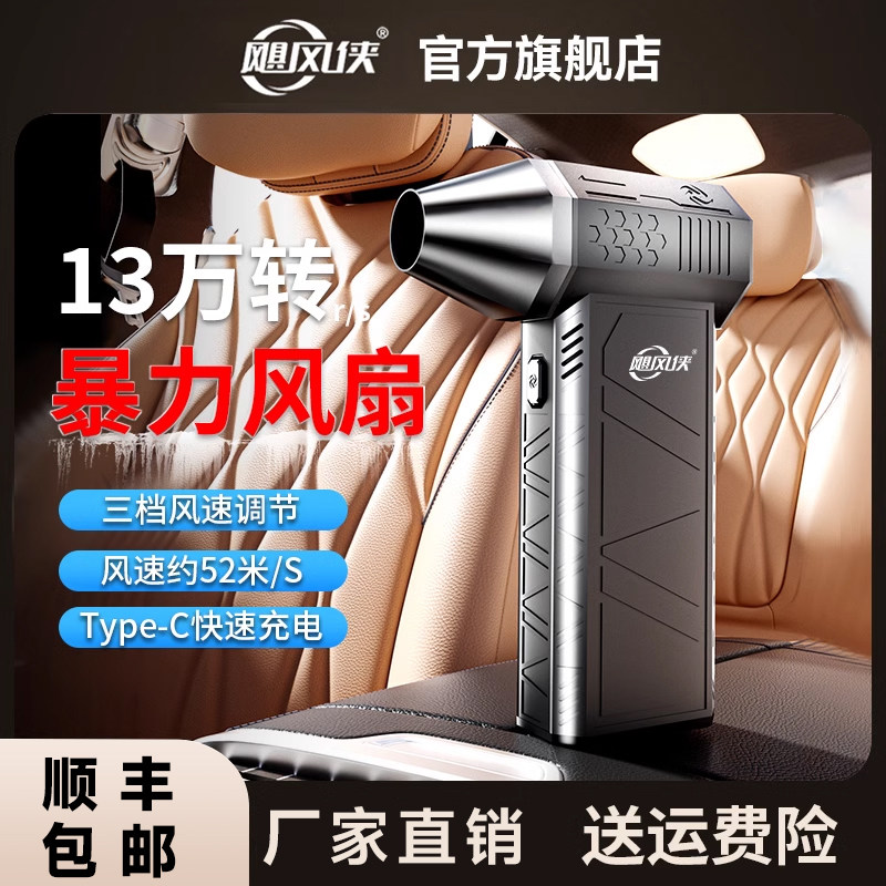 飓风侠X3暴力风扇手持涡轮暴力风扇13万转高速无刷电机大功率增压车载户外吹雪除雪神器洗车除尘暴力吹风机