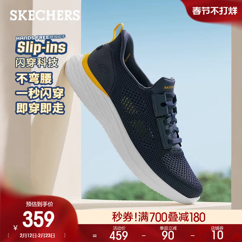 斯凯奇闪穿鞋夏季新款男一脚蹬运动休闲鞋透气网面健步鞋回弹