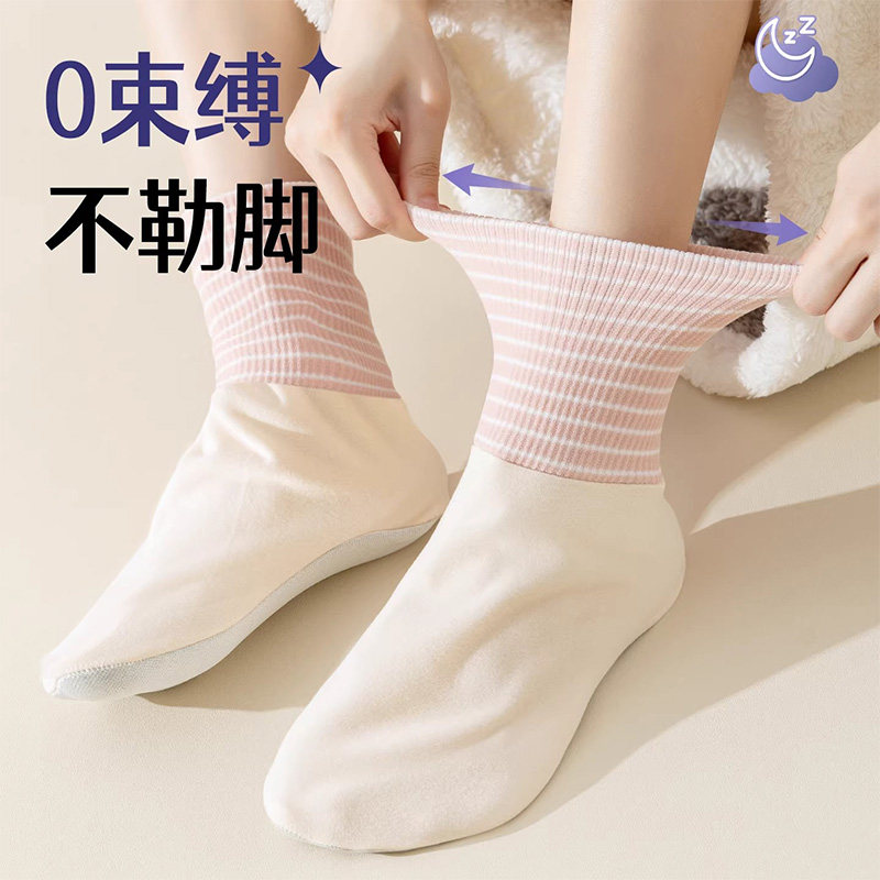 晚上睡觉穿的袜子女宽松口不勒脚睡眠专用袜冬季保暖月子居家中筒
