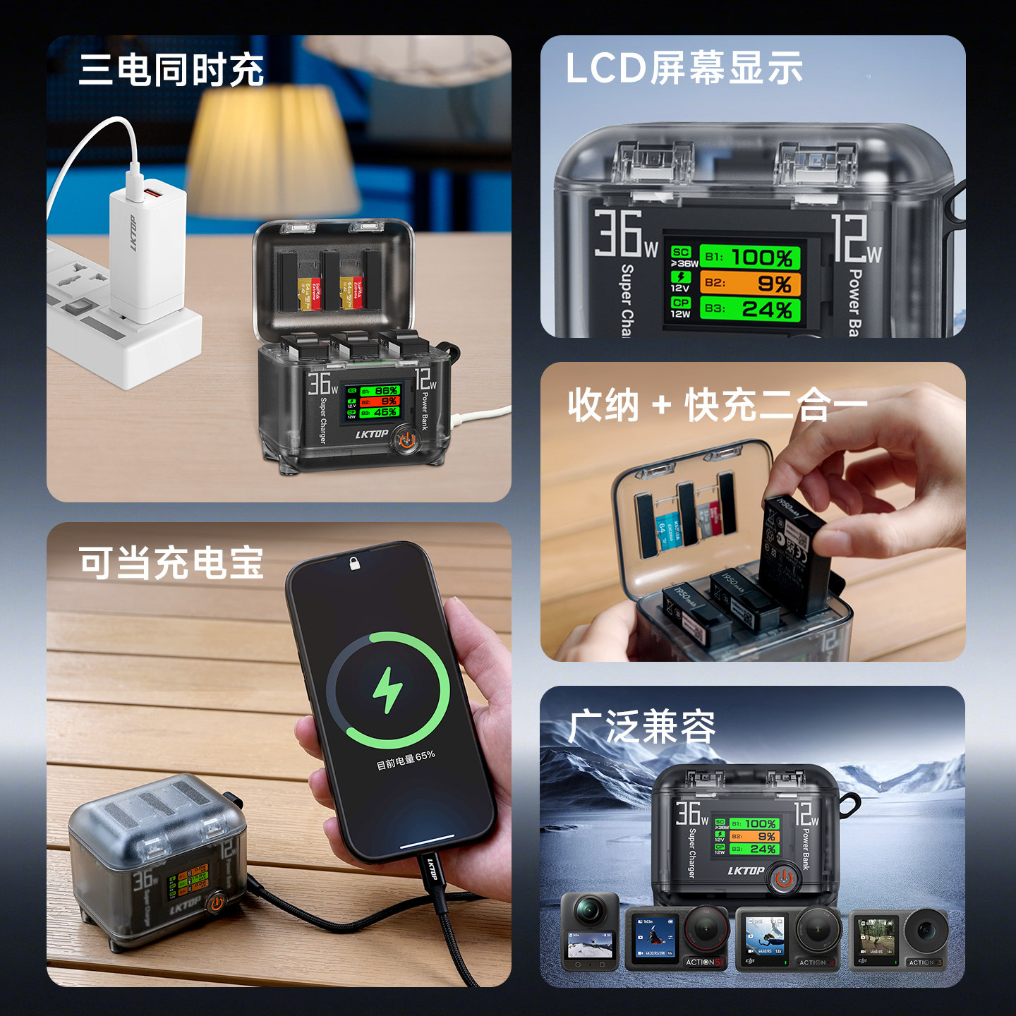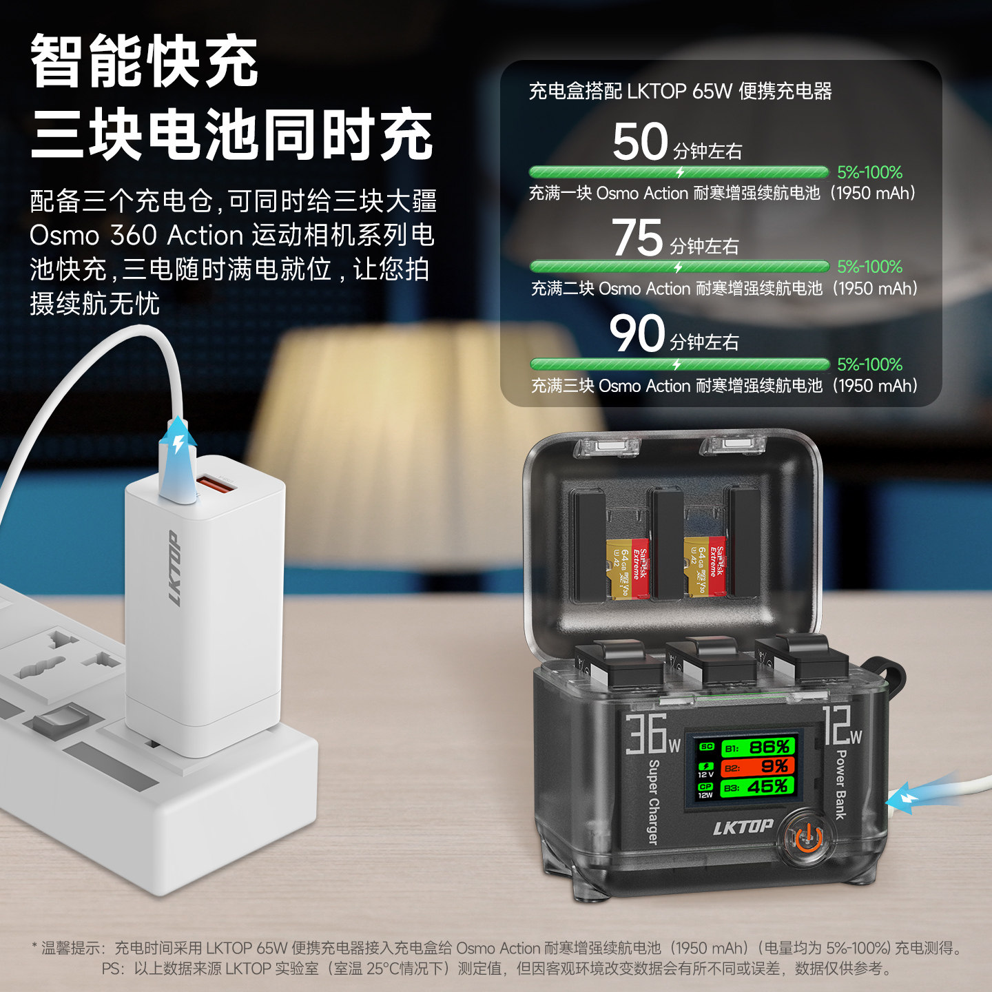 LKTOP立可拓适配大疆action6/5pro/4/3电池充电器充电仓osmo360充电盒大疆电池收纳盒充电管家运动相机配件