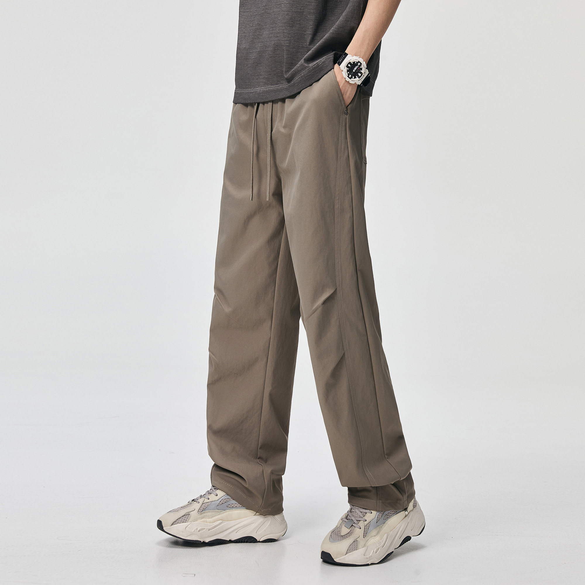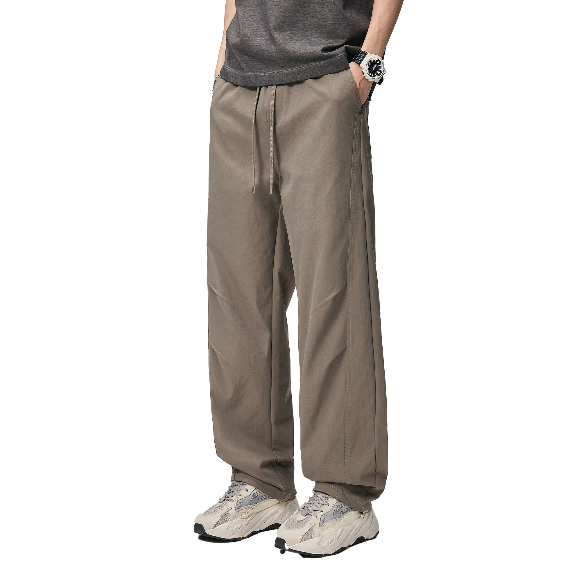 ALLIN 纯色褶皱休闲裤子男春秋潮牌抽绳松紧腰直筒裤垂感运动长裤
