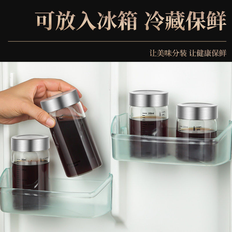 分装瓶耐高温空瓶带刻度便携玻璃密封罐喝液杯子储存瓶
