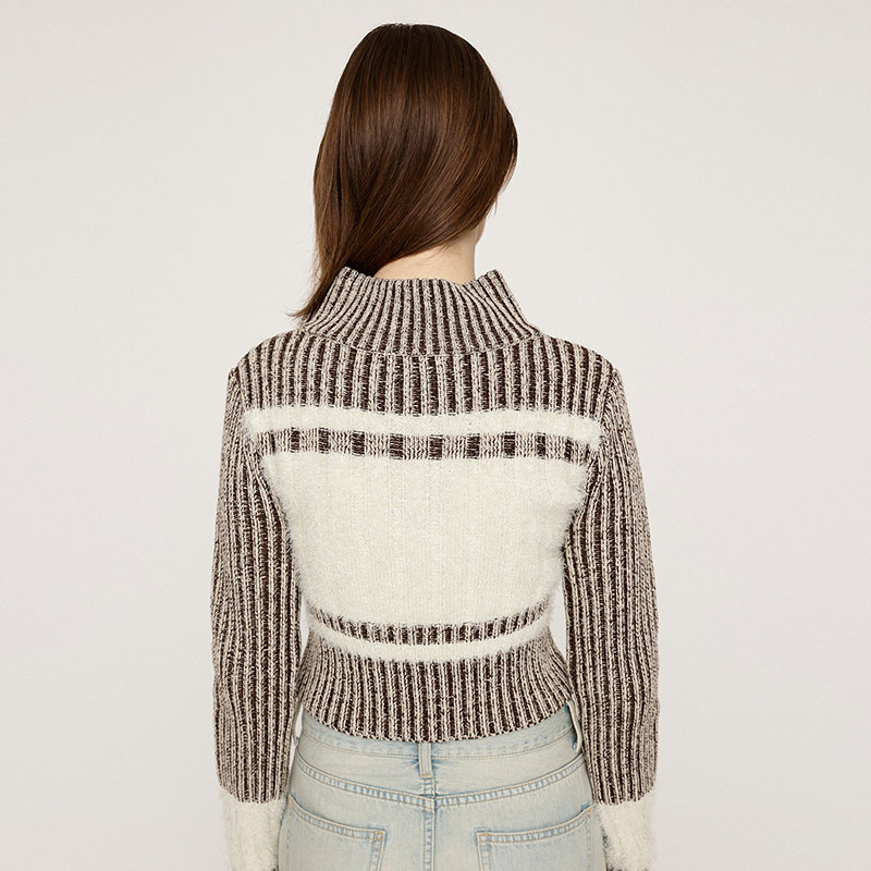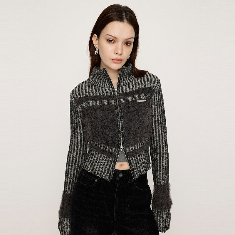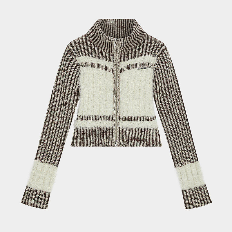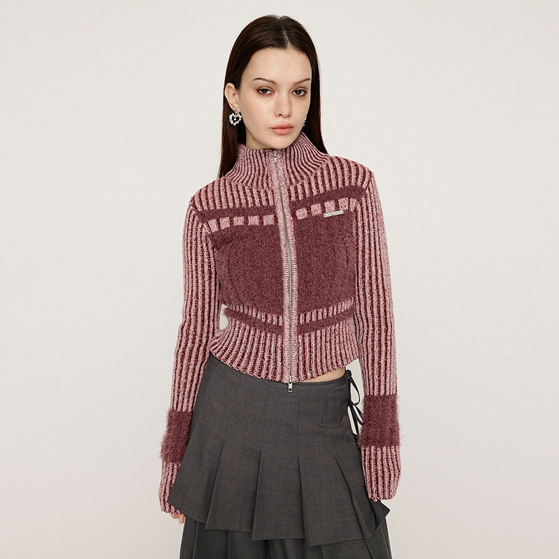 SLY 24冬季新品撞色软糯直筒立领拉链针织开衫女030HAR70-4861