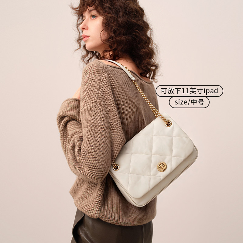 【所有女生的衣橱直播间】ELLE链条包菱格纹信封包通勤单肩斜挎包