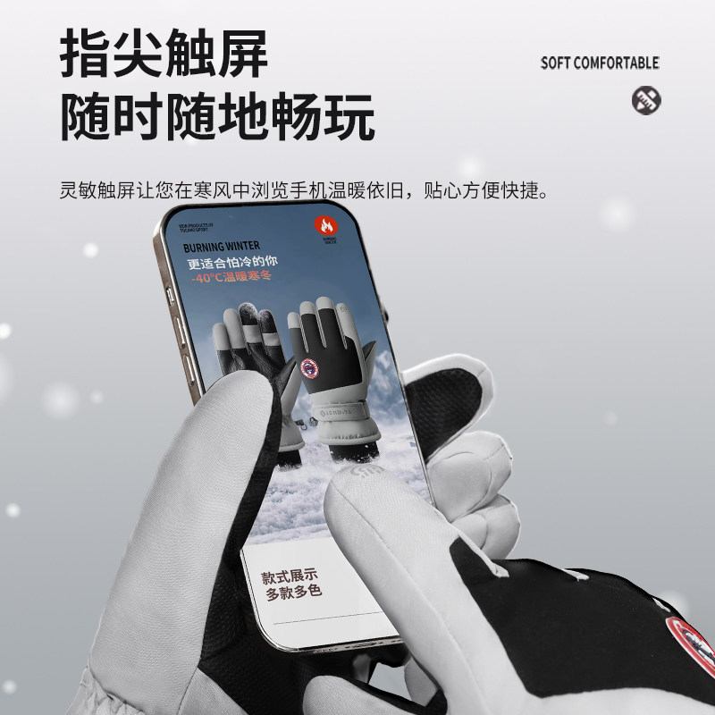 滑雪骑行手套冬季可触屏加绒加厚户外保暖防寒防风防水摩托车手套