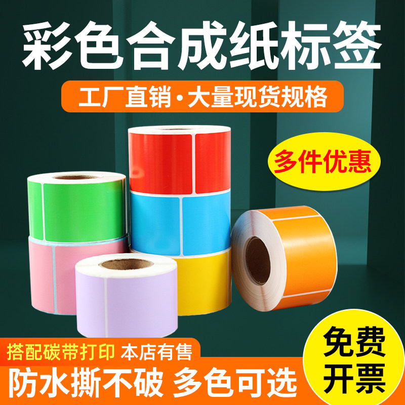 彩色铜版纸不干胶标签纸60*40 30 50 90 70 80 100红黄蓝紫牛皮色防水防油白色彩色标签纸不粘胶条码贴纸铜板