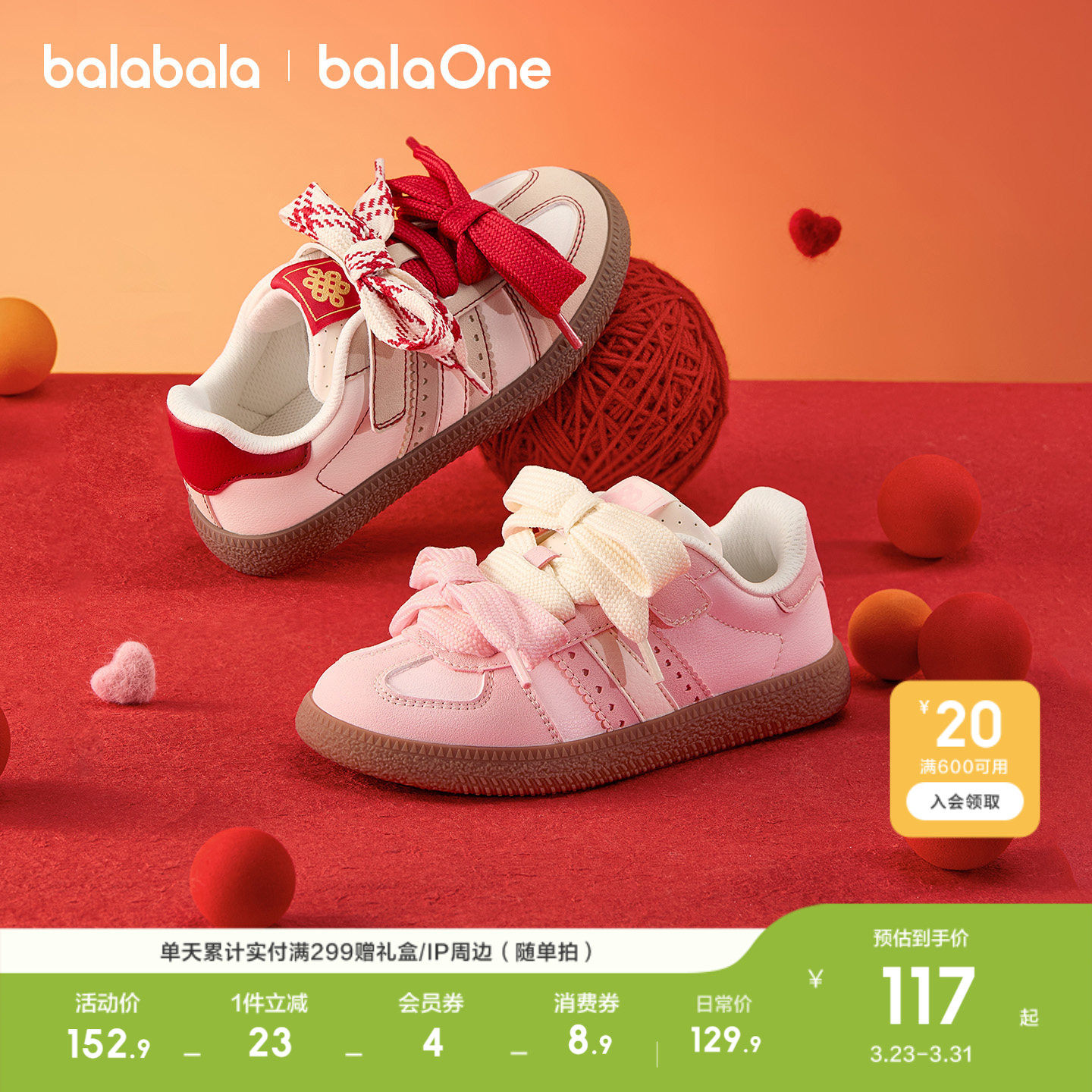 巴拉巴拉童鞋儿童板鞋女童德训鞋春秋2026新款透气潮红色低帮鞋子