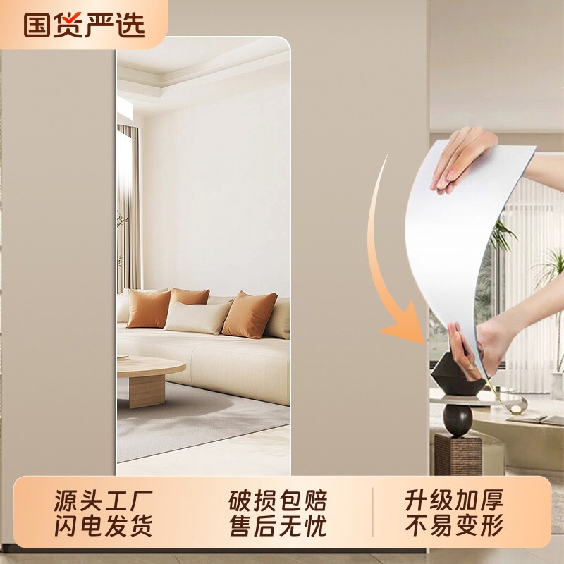 无框穿衣镜贴柜门壁挂全身镜落地镜家用免打孔挂墙面镜子贴墙自粘