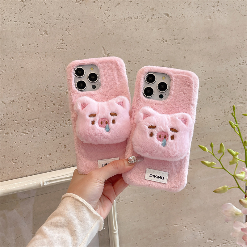 网红毛绒鼻涕猪适用苹果17promax手机壳16pro软壳15promax挂绳14/13防摔华为mate70pro/60软壳pura80/70女款