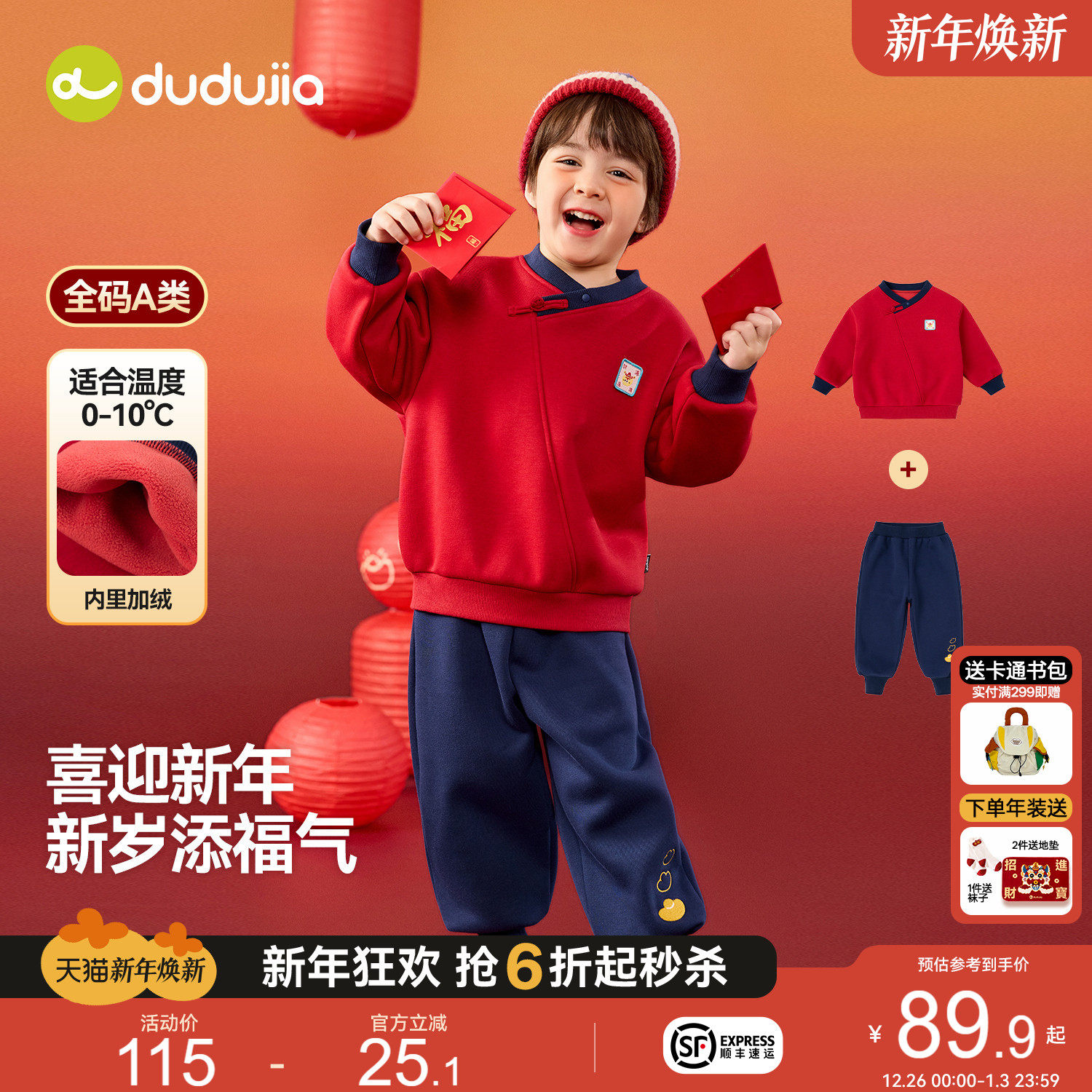 嘟嘟家童装儿童套装男童拜年服加厚女童年装国风宝宝唐装周岁礼服