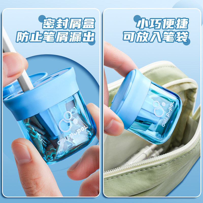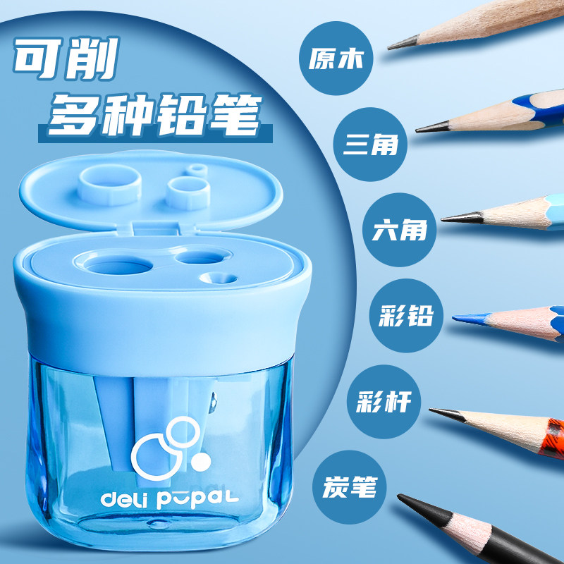 得力卷笔刀三孔转笔刀削笔刀小学生儿童幼儿园迷你型专用手动刨笔机粗三角铅笔刀削笔器大口径多功能旋笔刀