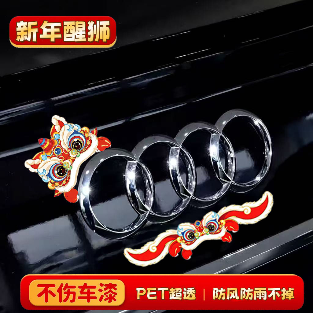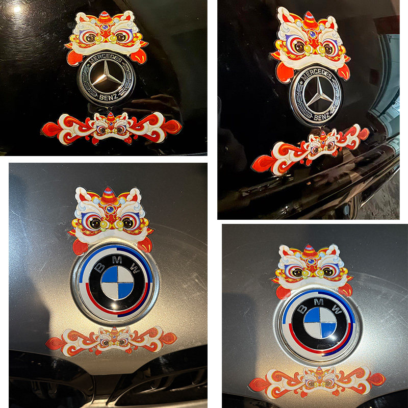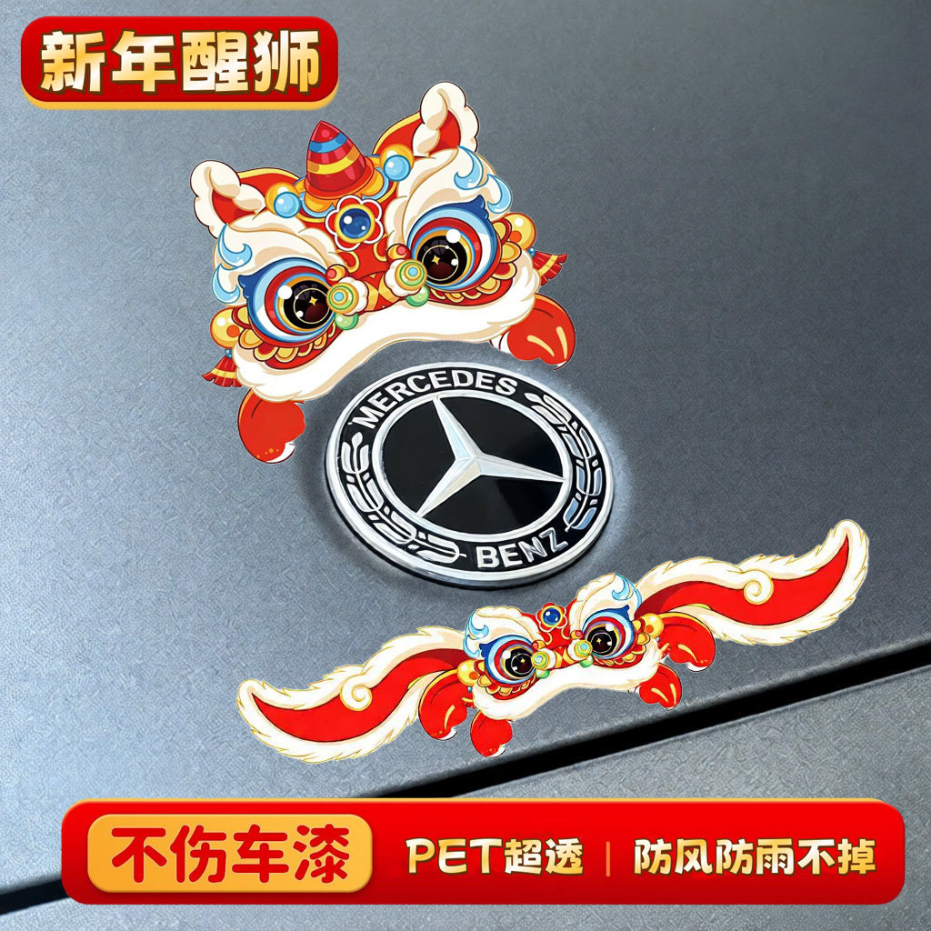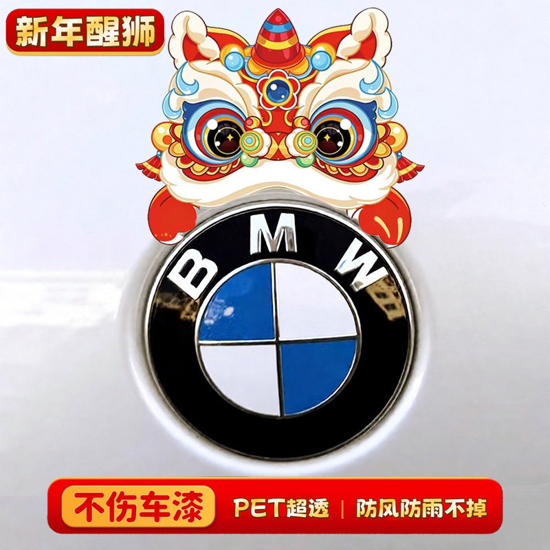 国潮醒狮款小米宝马大众特斯拉圣诞节汽车贴纸个性车贴2026装饰贴
