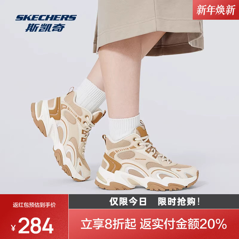 斯凯奇加绒机甲老爹鞋女款复古高帮鞋轻质保暖舒适时尚潮流