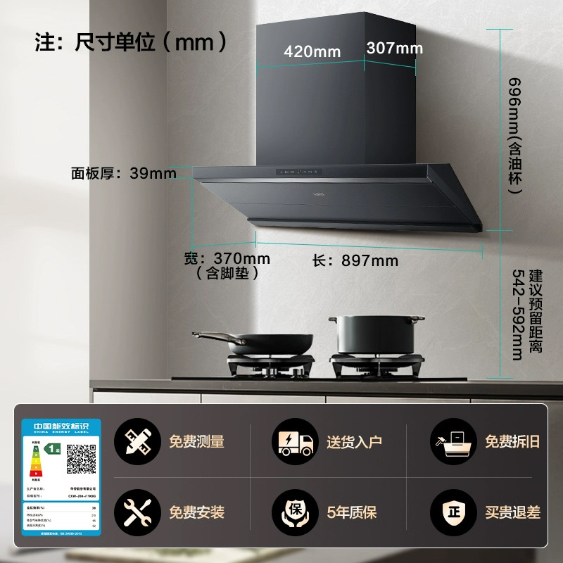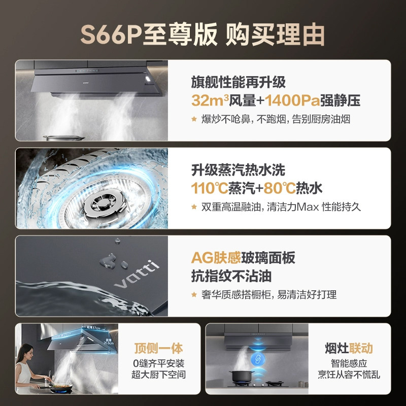 [小飞碟Max]华帝油烟机S66/S66P顶吸抽油烟机家用变频烟灶套装