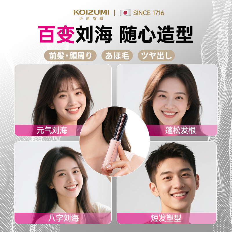 KOIZUMI小泉成器刘海梳迷你直发梳无线便携口红款随身造型电热梳