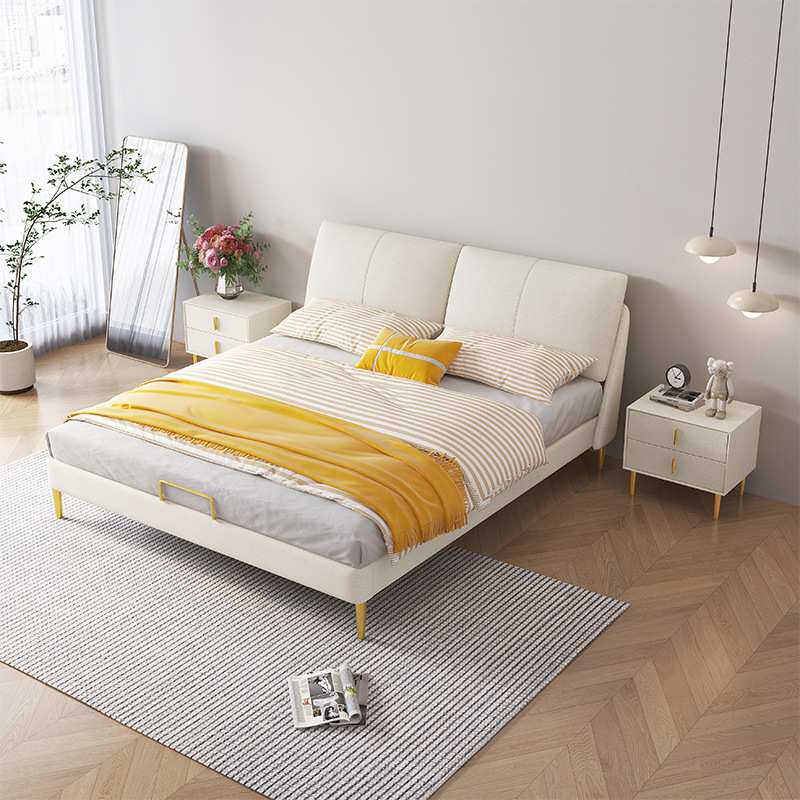 轻奢现代简约网红女生奶油风大象耳朵高箱储物双人科技布皮艺床