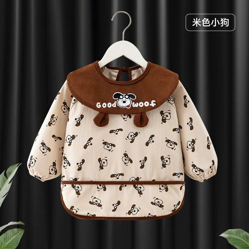 儿童罩衣防脏防水女宝宝围兜男小孩吃饭秋冬外套护衣衣灯芯绒外穿