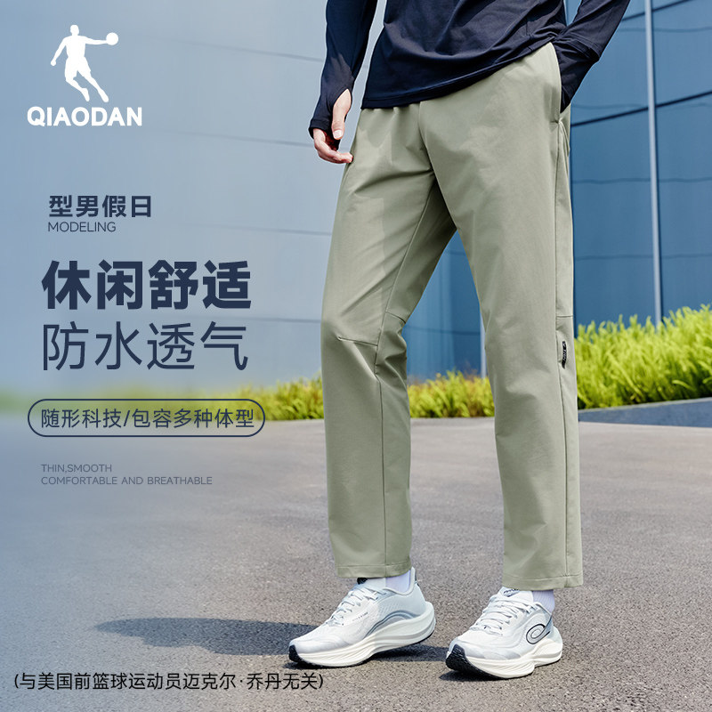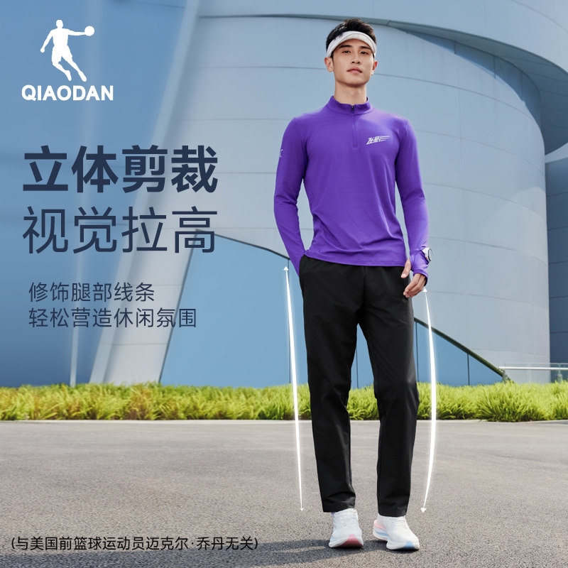 乔丹男裤弹力抗皱长裤子男2025秋季新款男士休闲运动跑步直筒裤黑