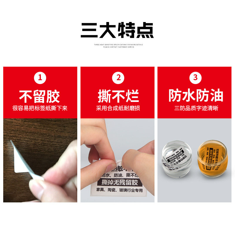 索马克五防热敏合成纸不干胶可移除不留胶标签纸60*40 30 50 70 80防水易撕条码打印贴纸家具板材玻璃贴纸