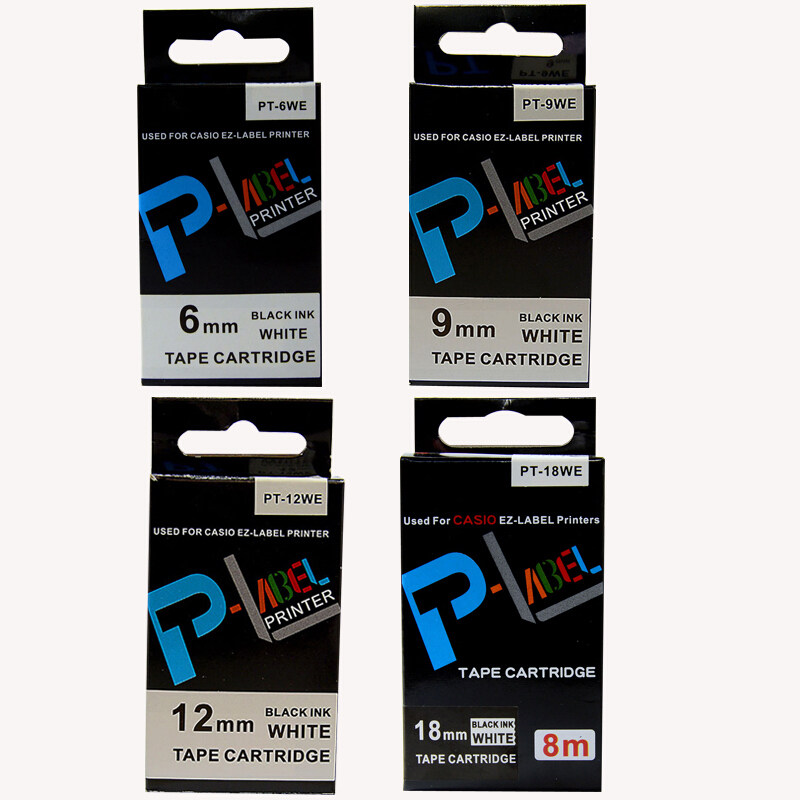 普贴适用卡西欧标签机色带12mm6 9 18 24mmKL-60 170/180/820KL120 7400 CASIO不干胶标签纸 白底黑字PT-12WE
