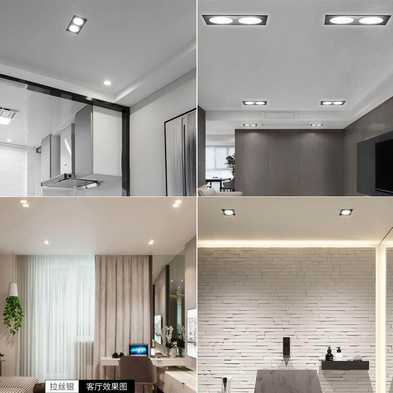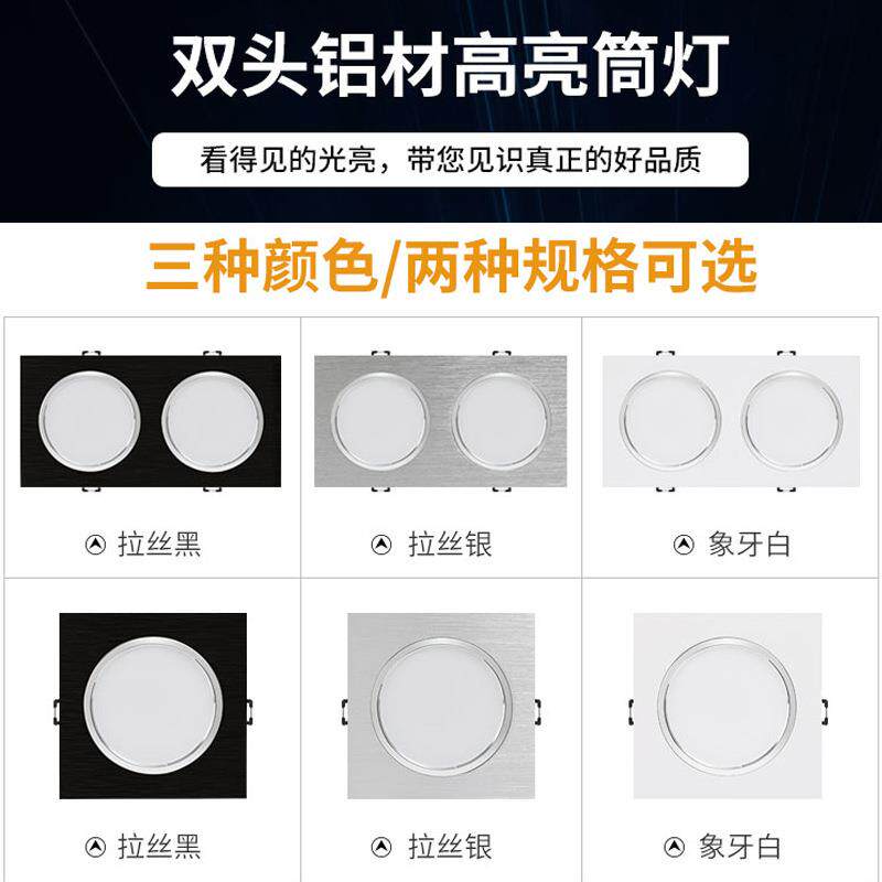 LED双头筒灯吊顶格栅灯长方形射灯嵌入式天花灯双排斗胆灯双筒灯
